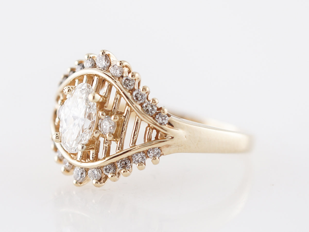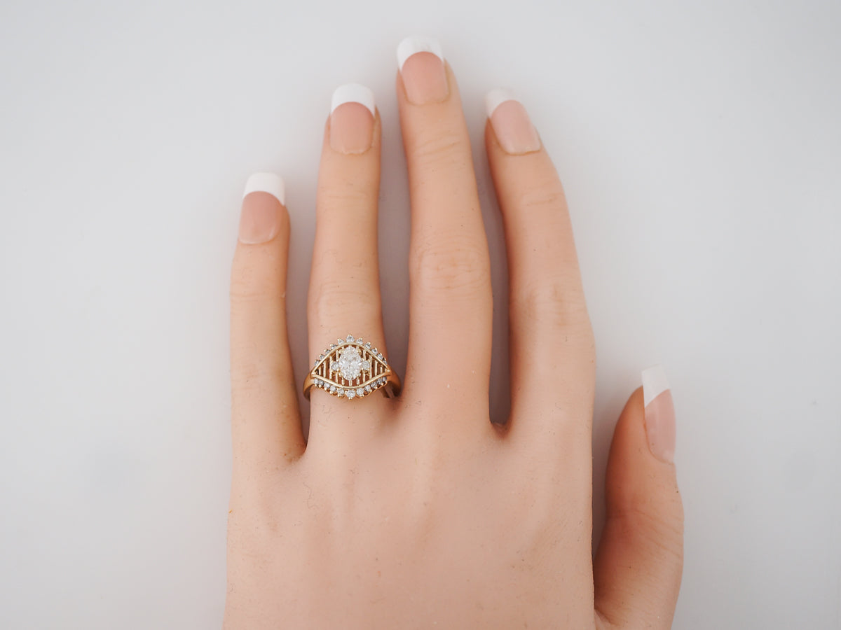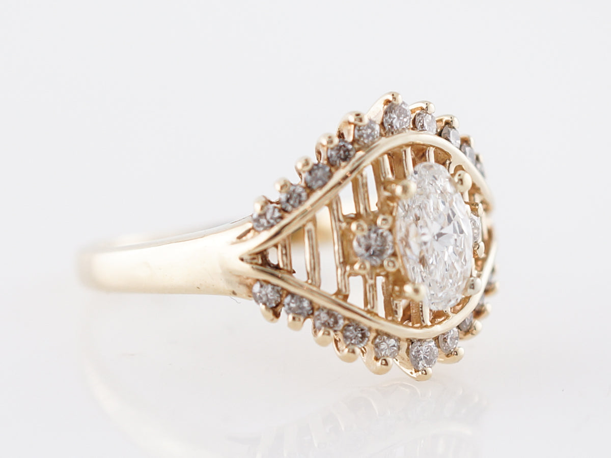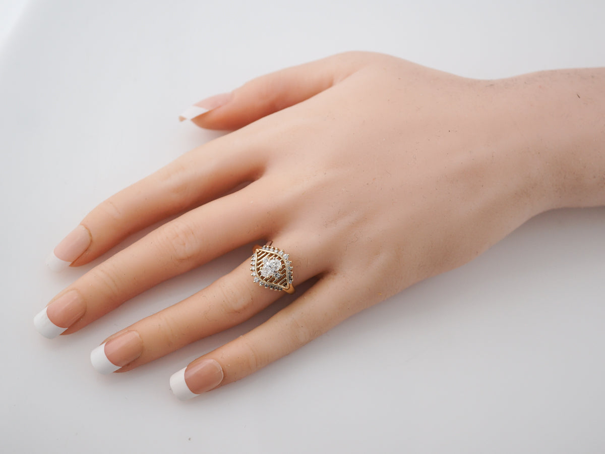 Half Carat Oval Diamond Ring w/ Yellow Gold Filigree