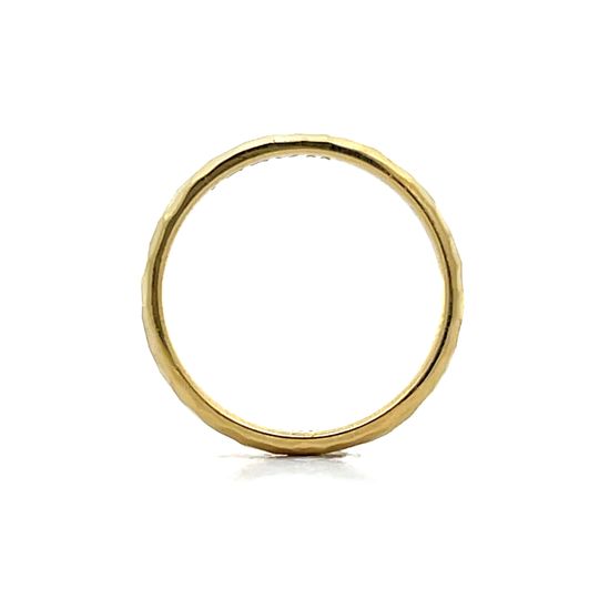 This hammered gold stackable ring, crafted from 18 karat yellow gold, brings a modern flair with its textured surface when it catches the light. Its clean, simple design makes it versatile, whether worn alone or layered with other rings to create a stack.