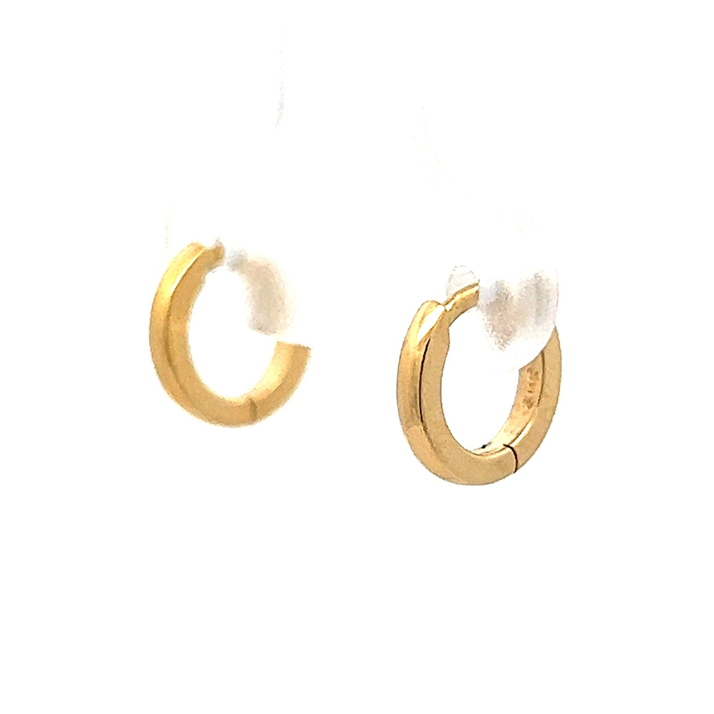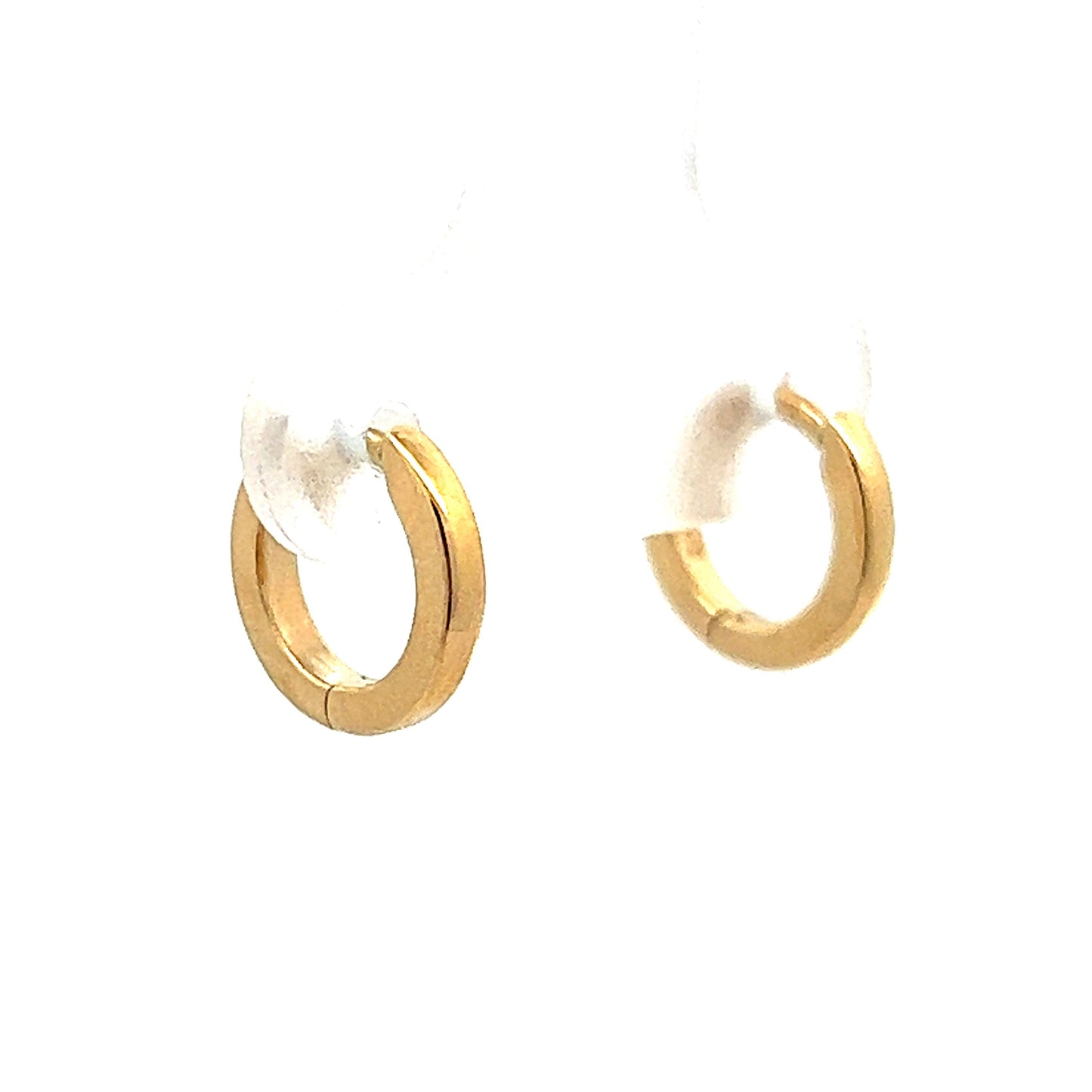 These modern hoop earrings are an absolute must-have for your jewelry collection. Crafted from solid 14 karat yellow gold with a high polish finish, the earrings have a flat edge and measure 10mm in length. The classic hoop design is timeless and versatile, a perfect balance of modern function and timeless style.