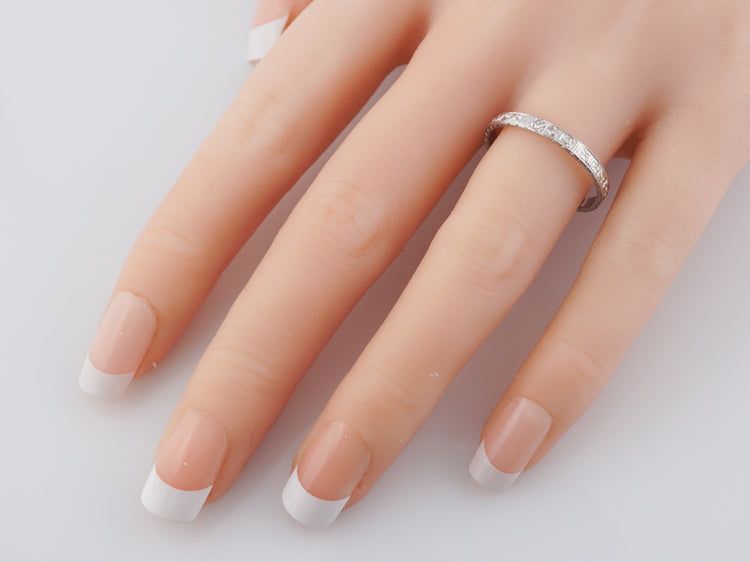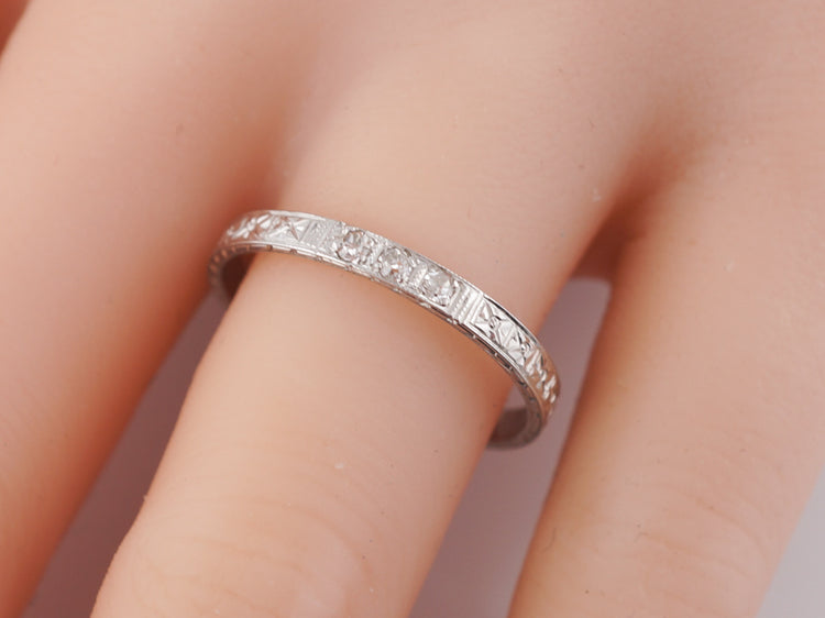 Antique Wedding Band Art Deco .06 Old European & Single Cut Diamonds in 18k White Gold
