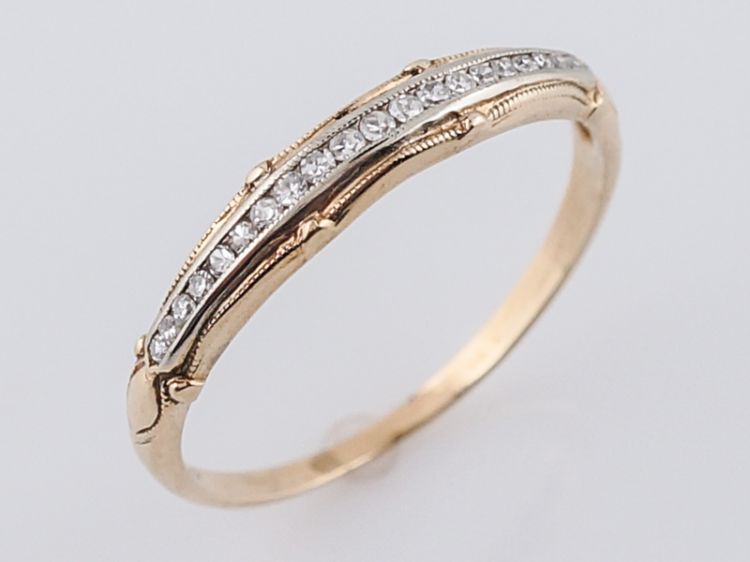 Antique Wedding Band Art Deco .20 Single Cut Diamonds in 14k Yellow Gold