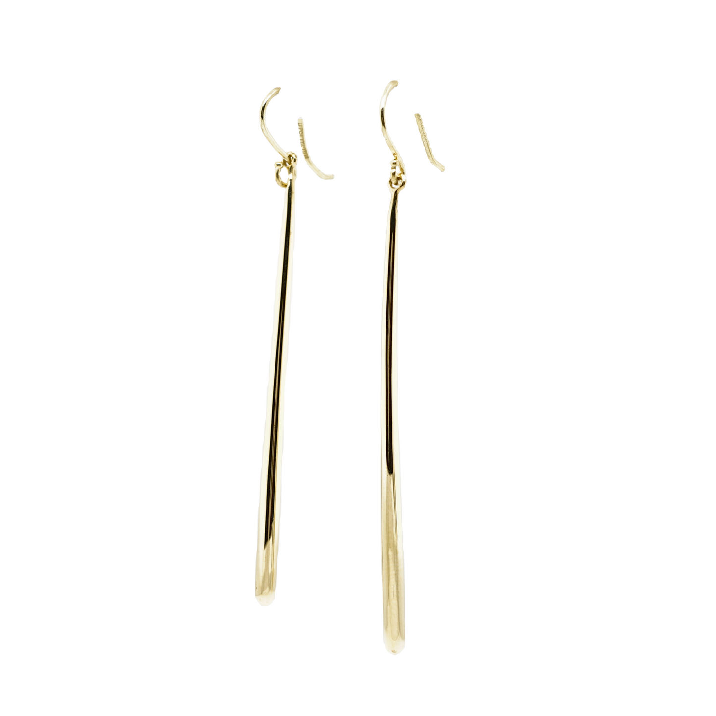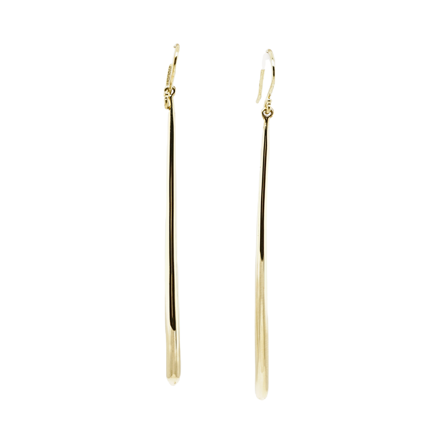 Ippolita Dangle Earrings in 18K Yellow Gold. These modern Ipolita earrings feature two lightweight charms finished in high polished 18k yellow gold. Fabulous and futuristic, these drop earrings feature fish hook backings for comfortable daily wear. Measuring 2 long, these earrings will be the statement piece to elevate any look!