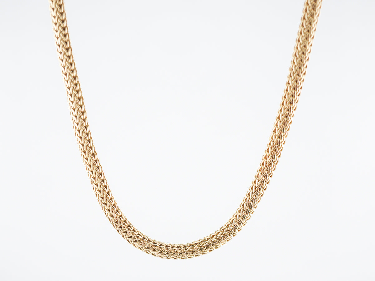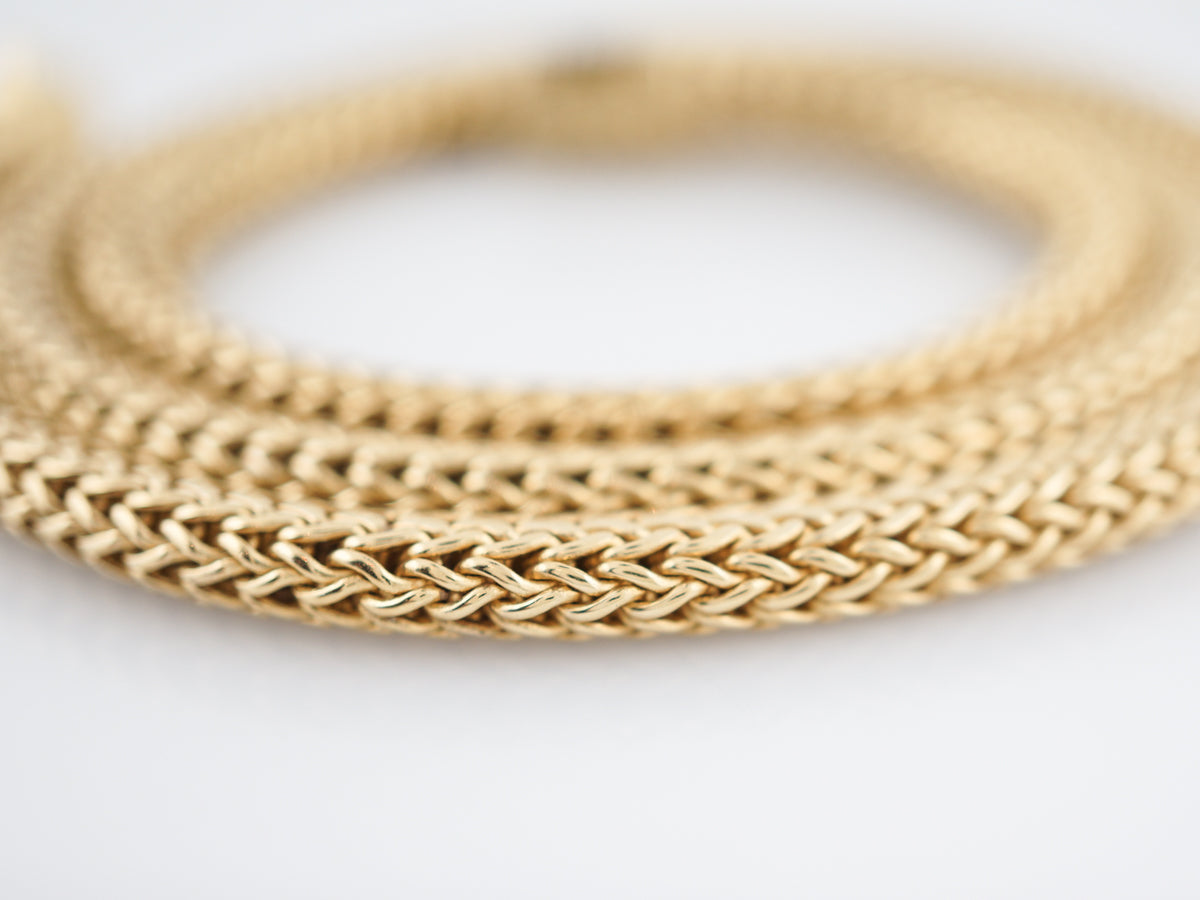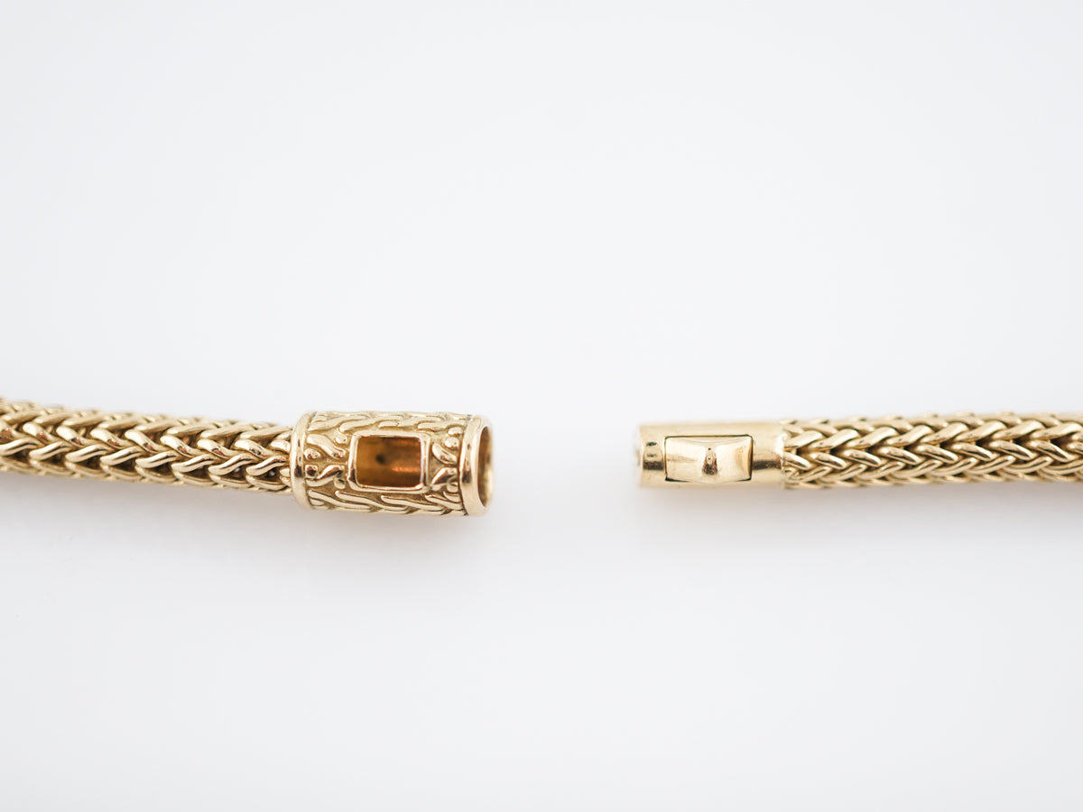 The construction of this John Hardy wheat necklace is so easy to appreciate. The 18k yellow gold piece has such a solid esthetic and we love the clean, bold look. Truly a classic chain.