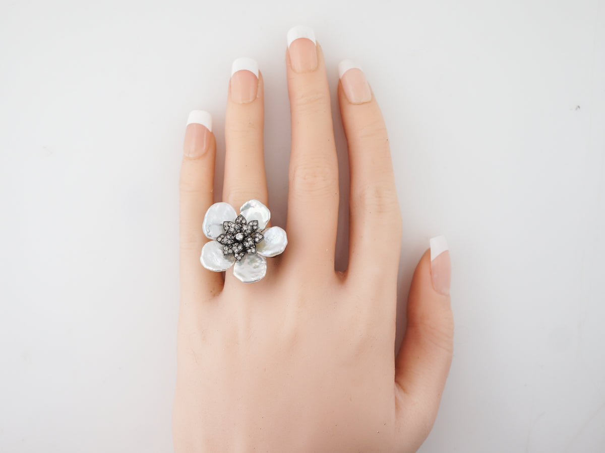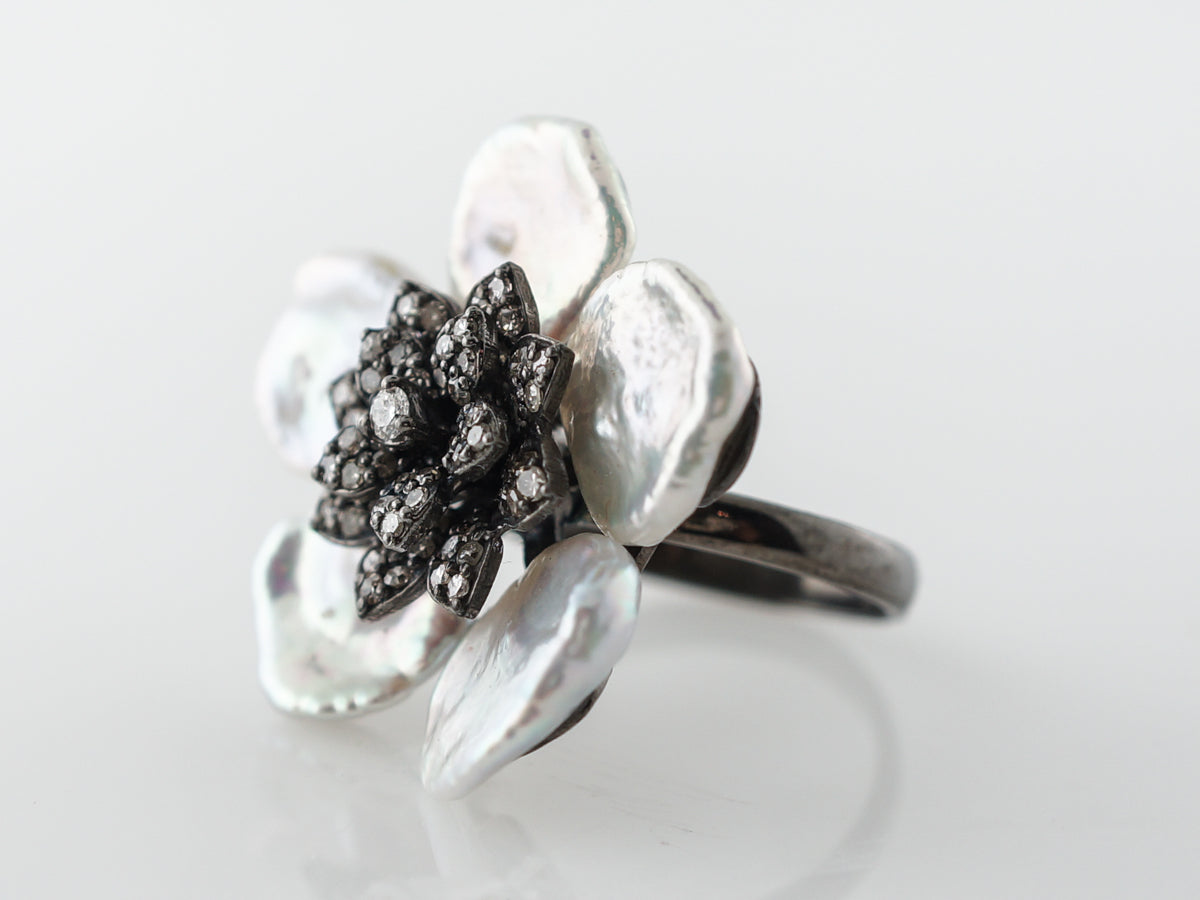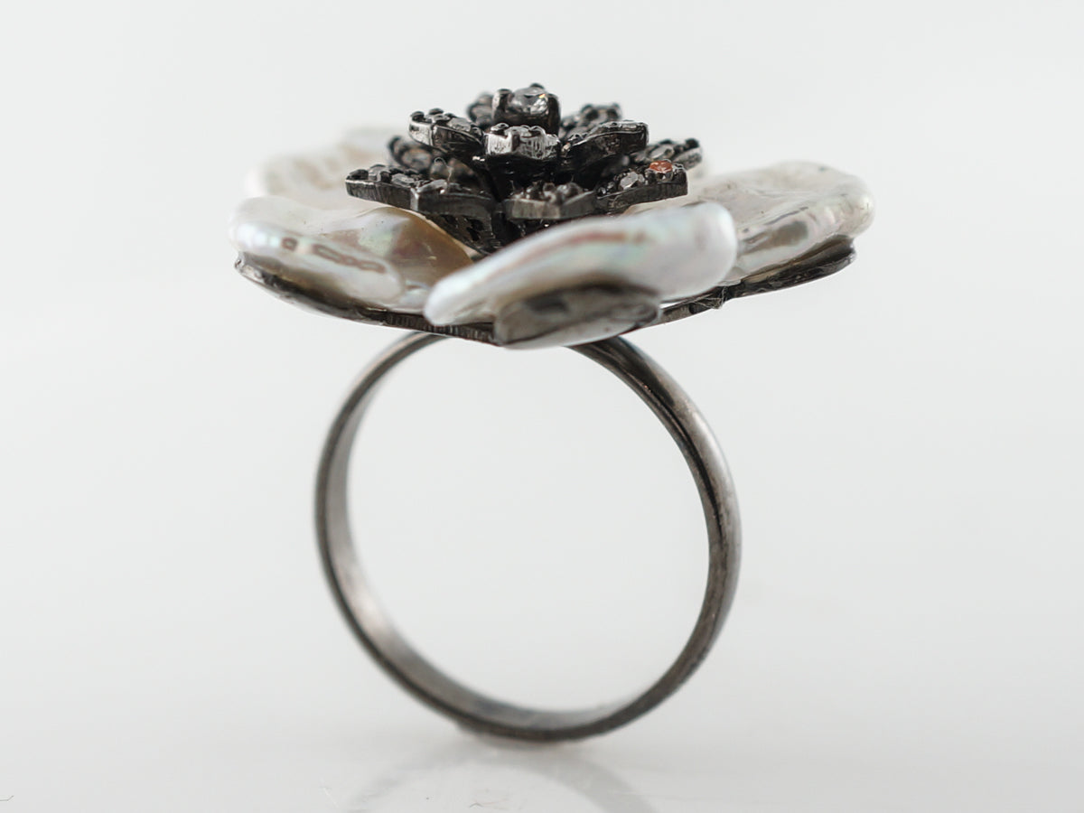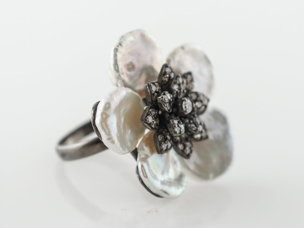 Keshi Pearl & Diamond Floral Cocktail Ring in Sterling Silver