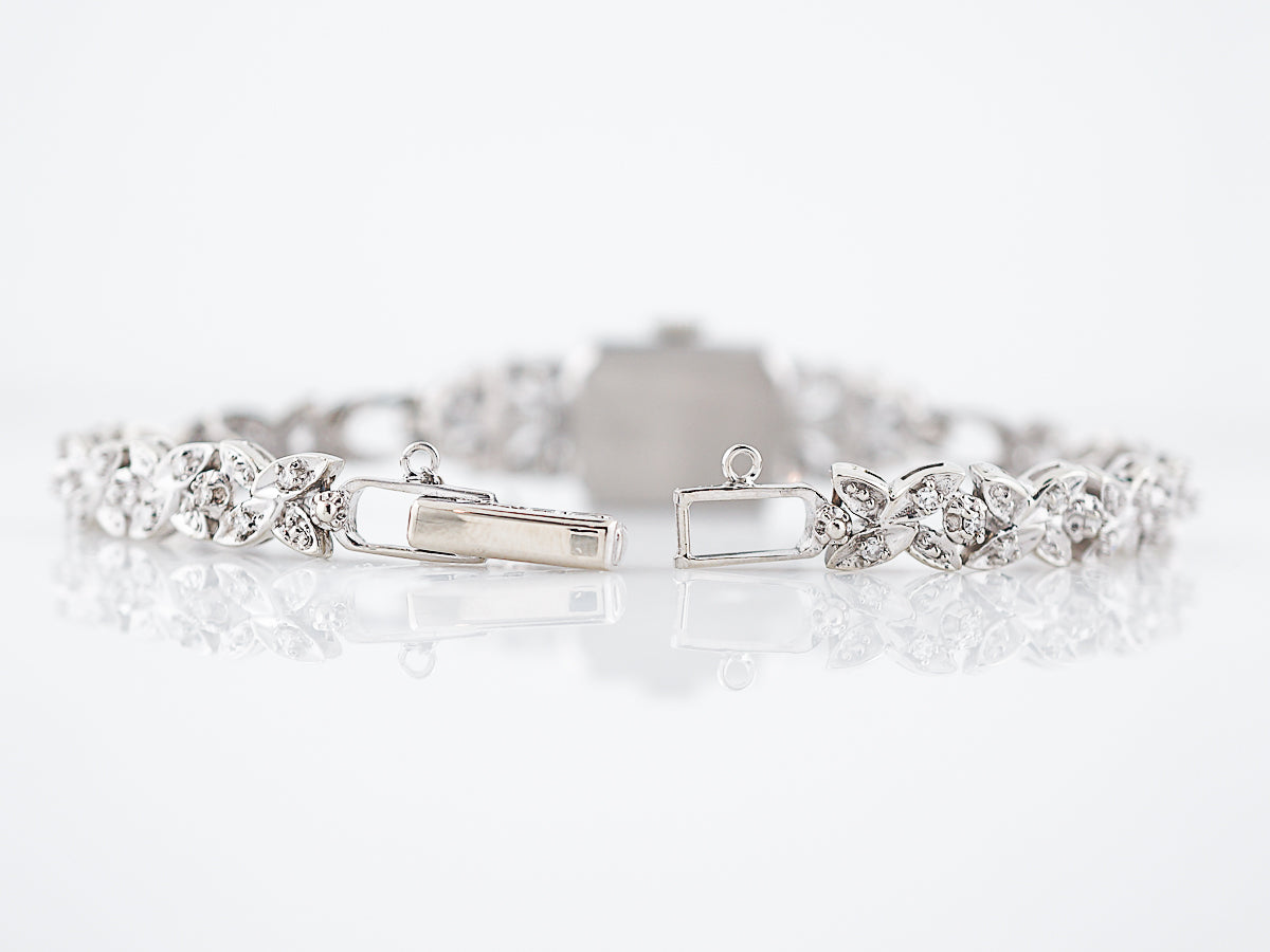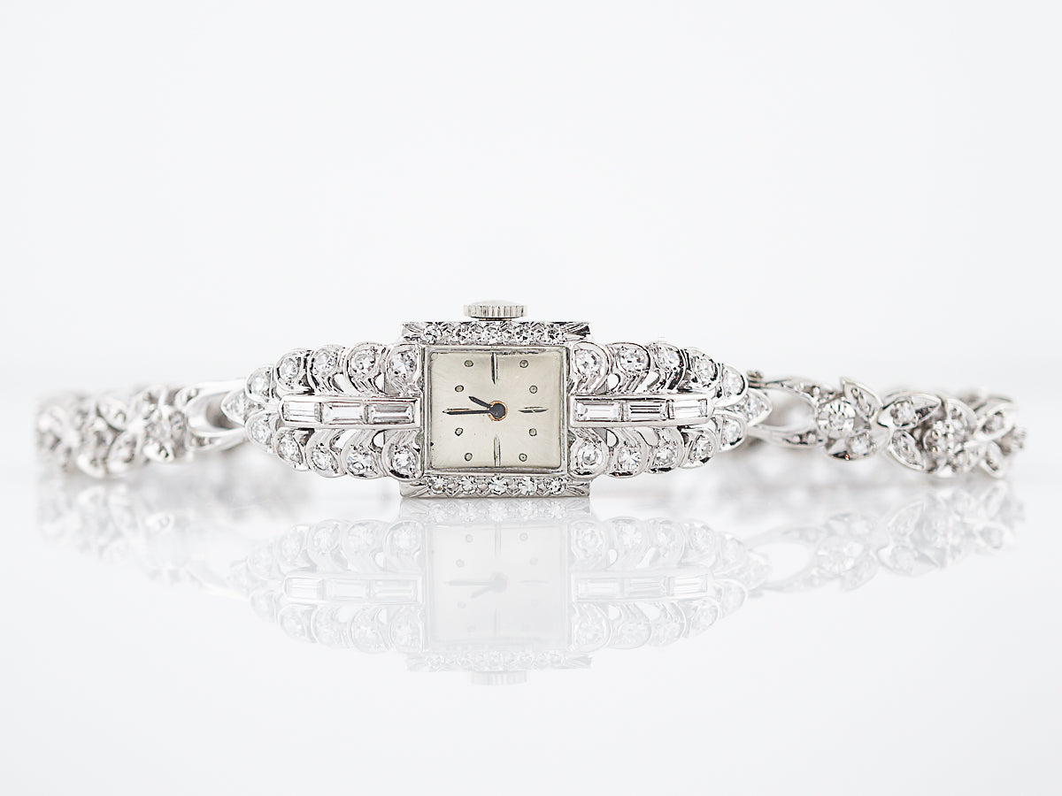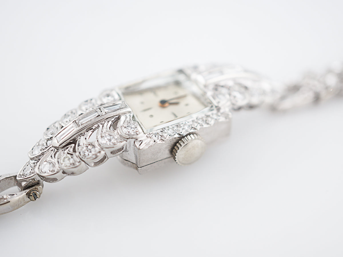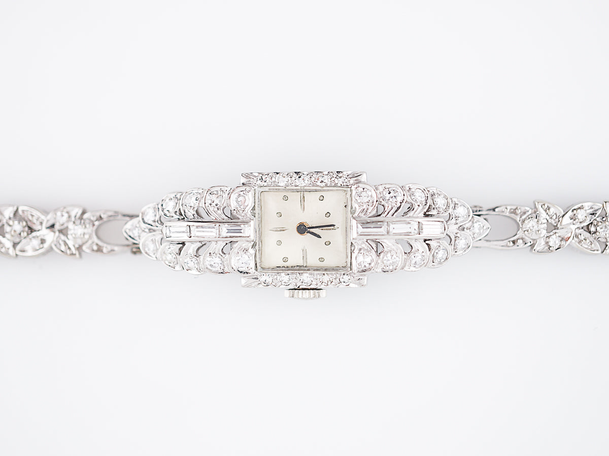 Ladies Watch Late Art Deco 1.55 Baguette & Single Cut Diamonds in 14k White Gold & Platinum