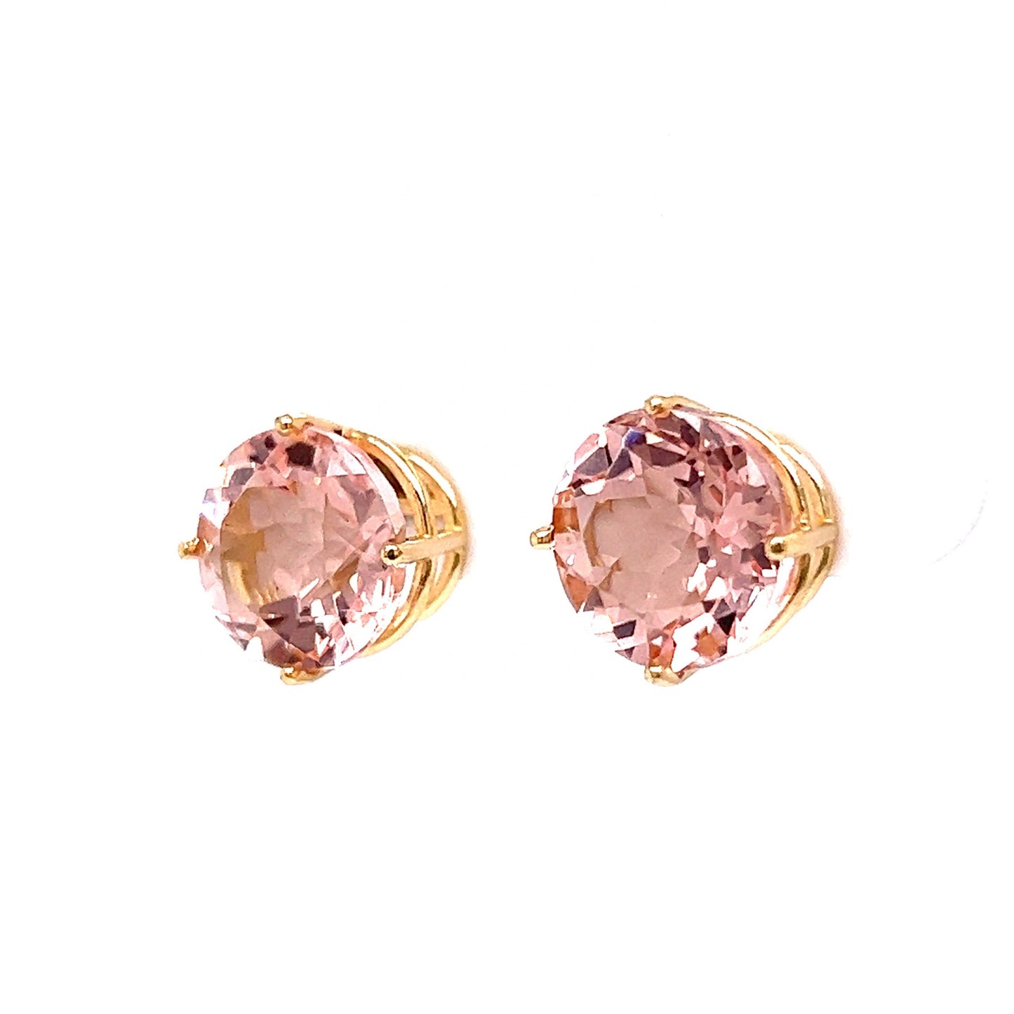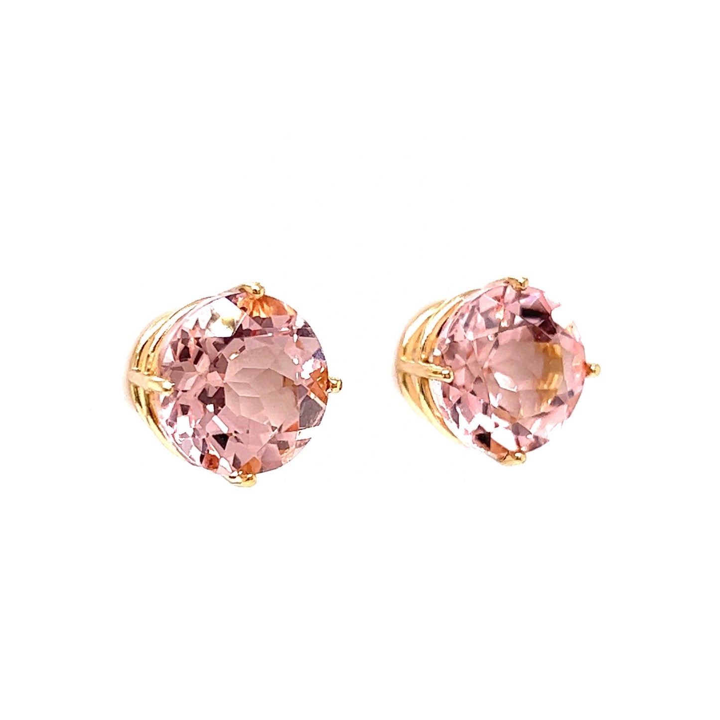 Large Round Cut Morganite Stud Earrings in 14k Yellow Gold