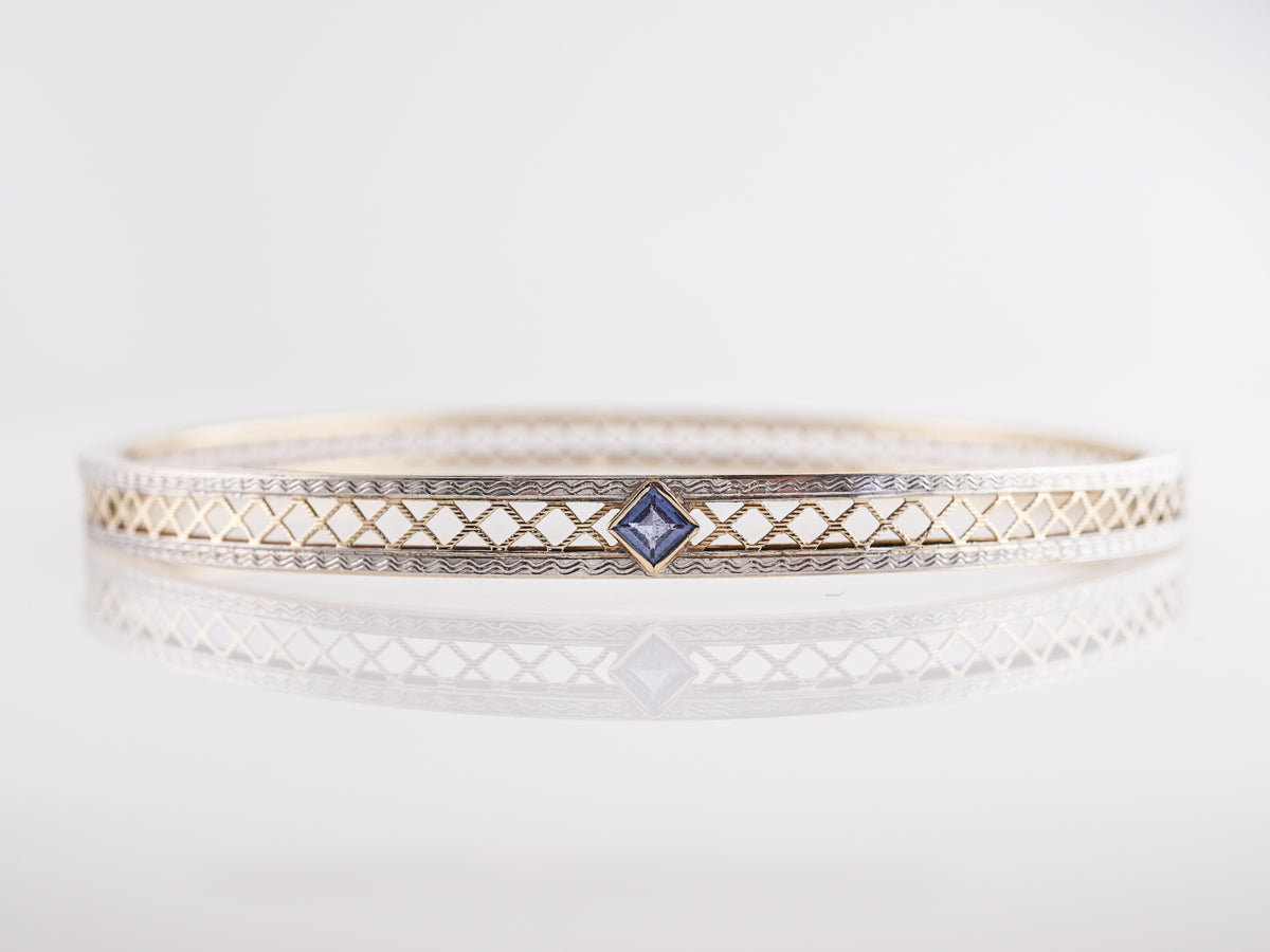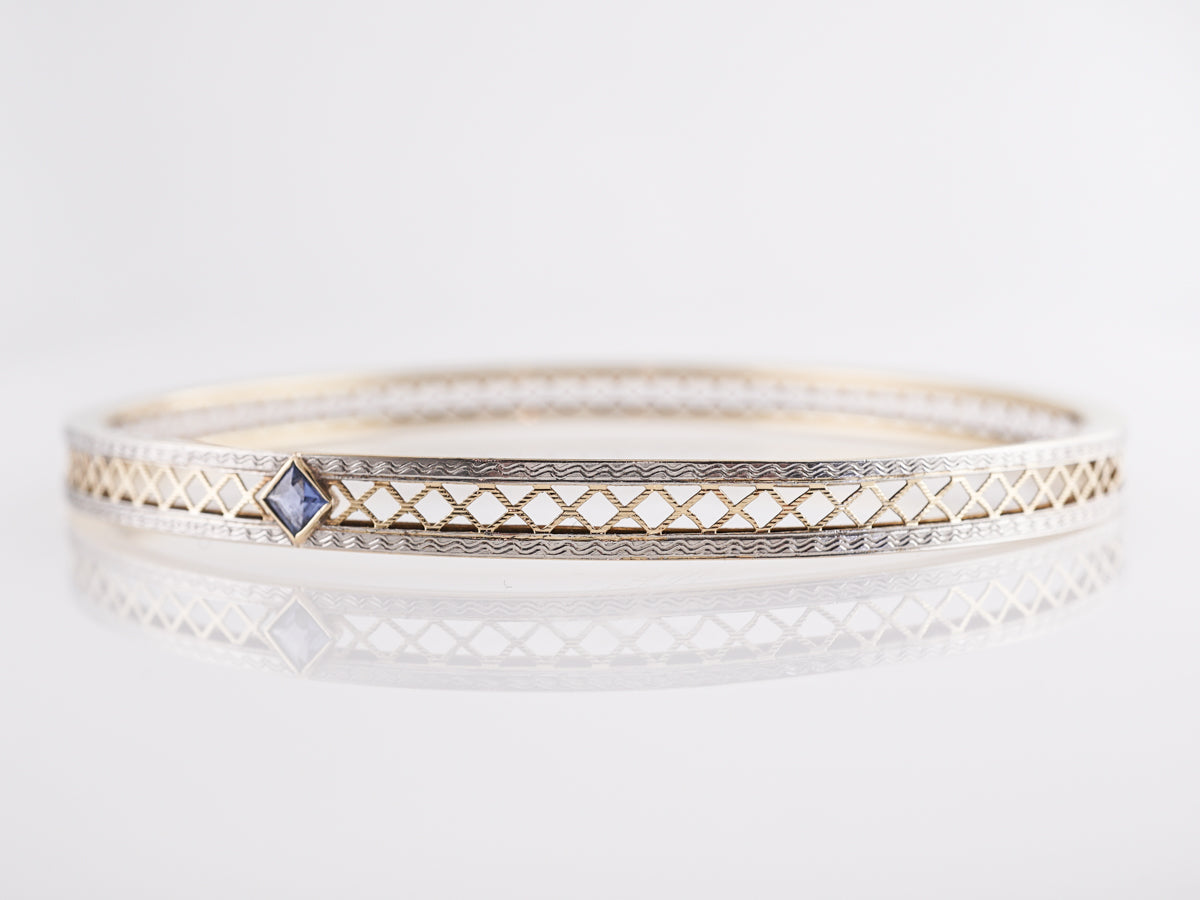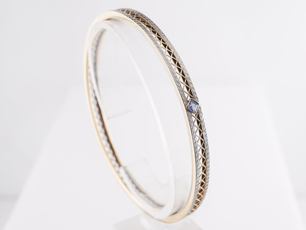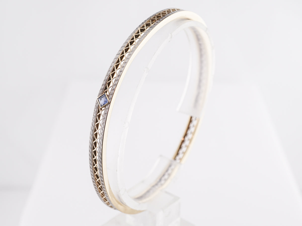 Late Art Deco Sapphire Bangle Bracelet in 14k White & Yellow Gold