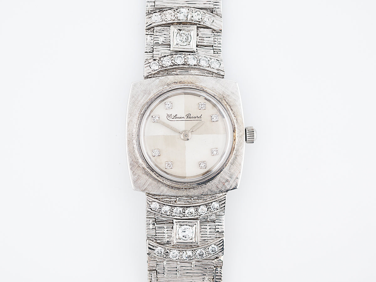Lucien Piccard Watch Mid-Century 1.08 Transitional Cut Diamond in 14k White Gold