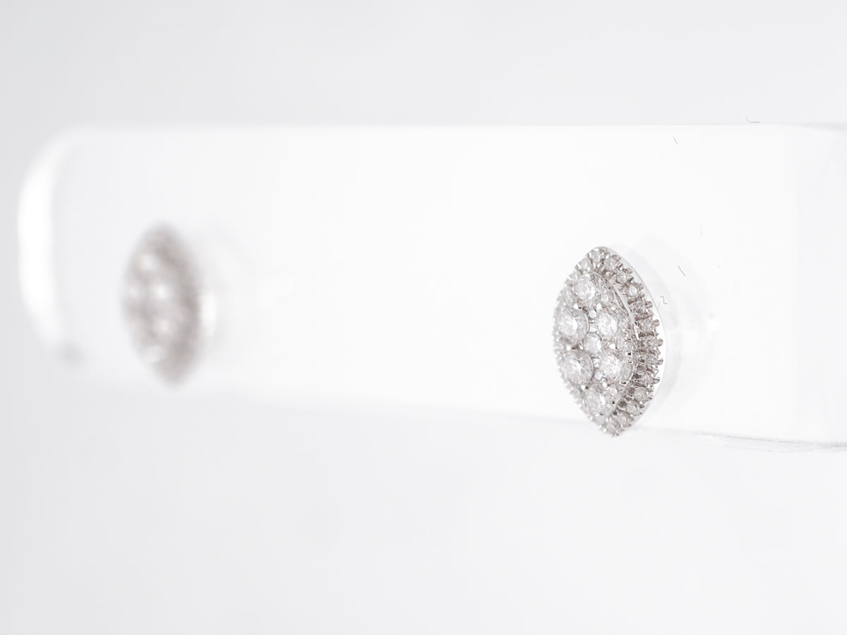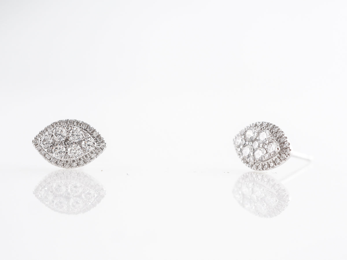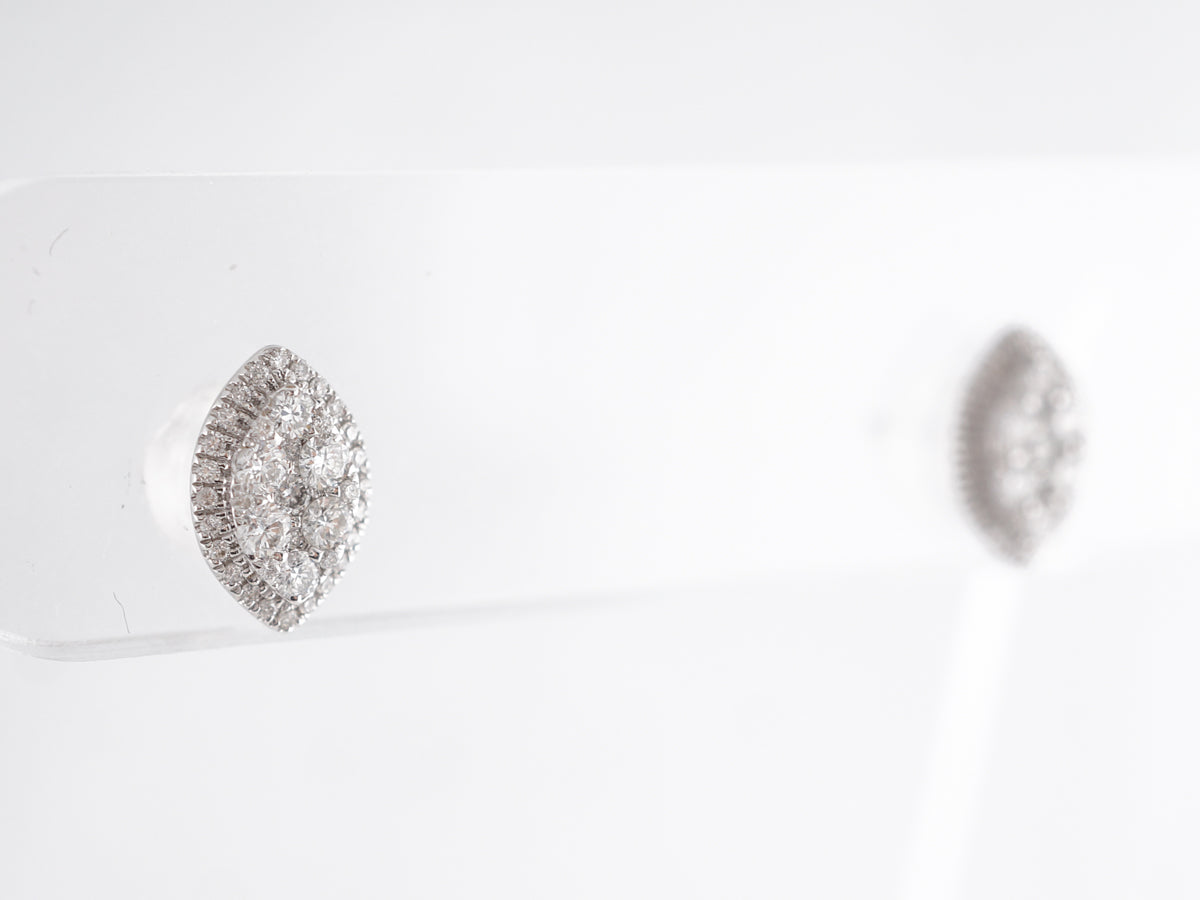 Marquis Pave Cluster Diamond Earrings 14K White Gold. These modern cluster earrings feature .42 carats of diamonds and are finished in 14 karat white gold. The clusters are marquise shaped with smaller diamonds outlining the border and larger stones in the center. These would be great for everyday wear and fancy evening wear as well!