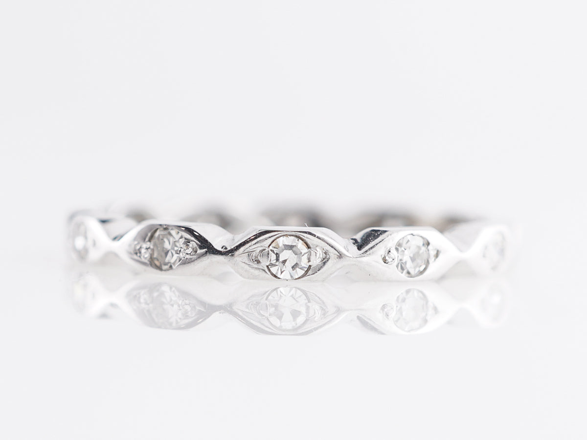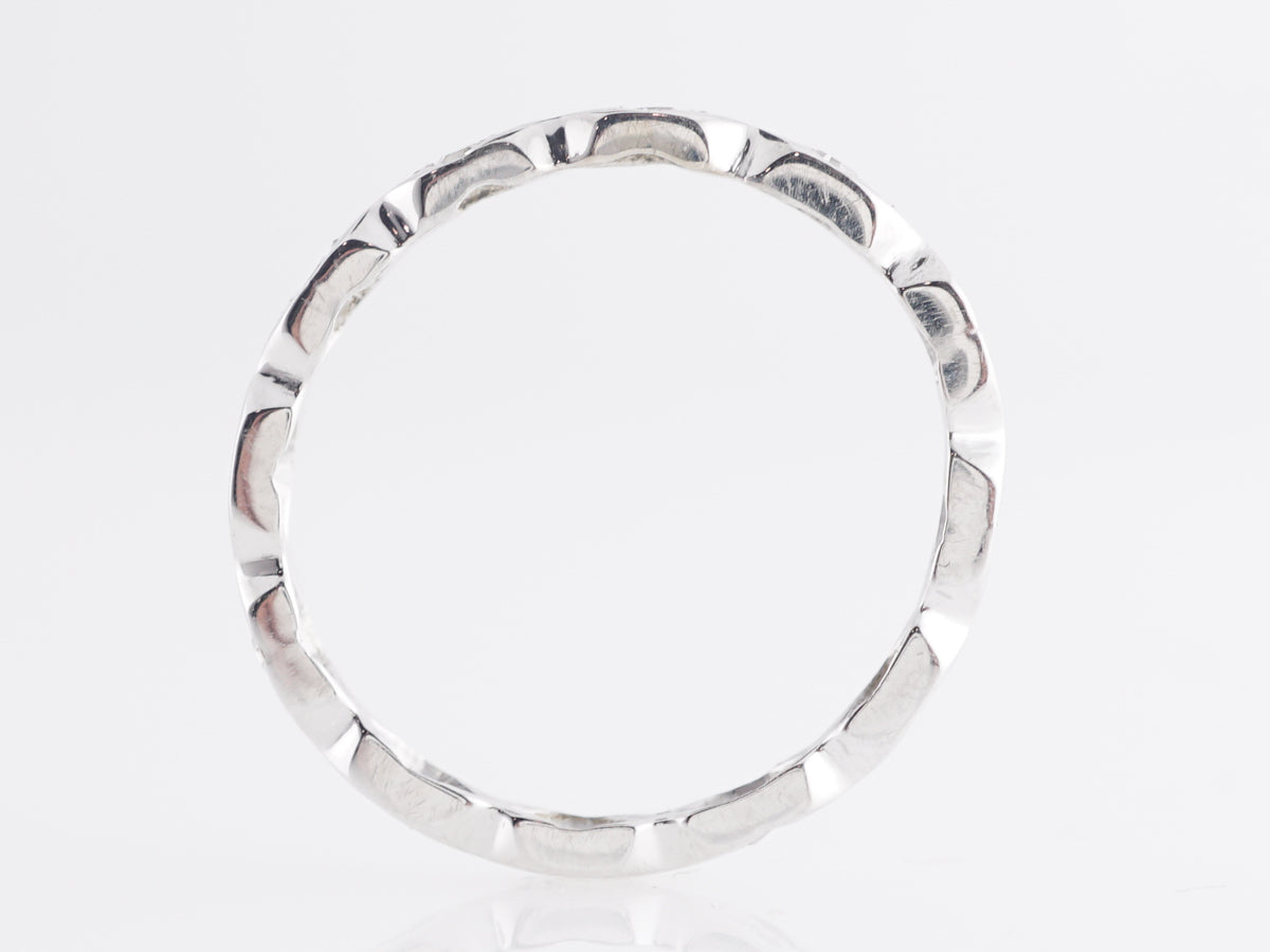 Marquis Station Diamond Eternity Band in 14K White Gold. This striking Sectioned Diamond Eternity Band in 14K White Gold includes a ring of single cut diamonds set in a shimmering 14K white gold band. The wavy, symmetrical texture of this ring makes it a great choice to stack with other bands.