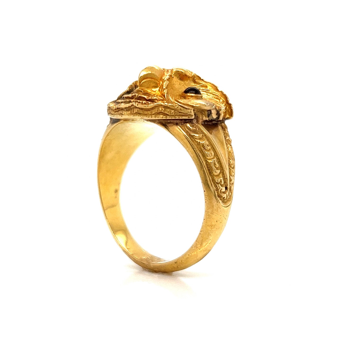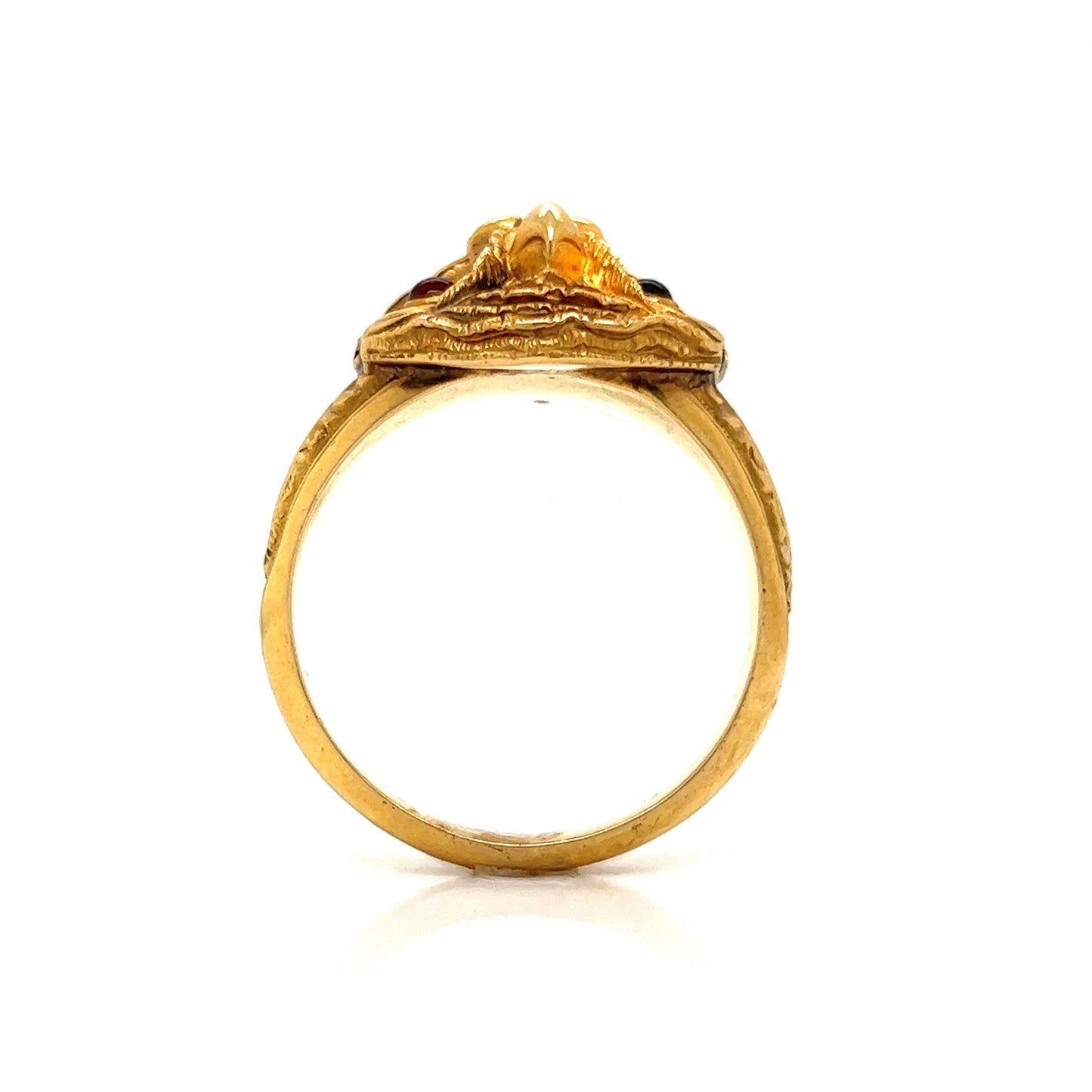 Men's Antique Victorian Garnet Owl Ring in 18k Yellow Gold