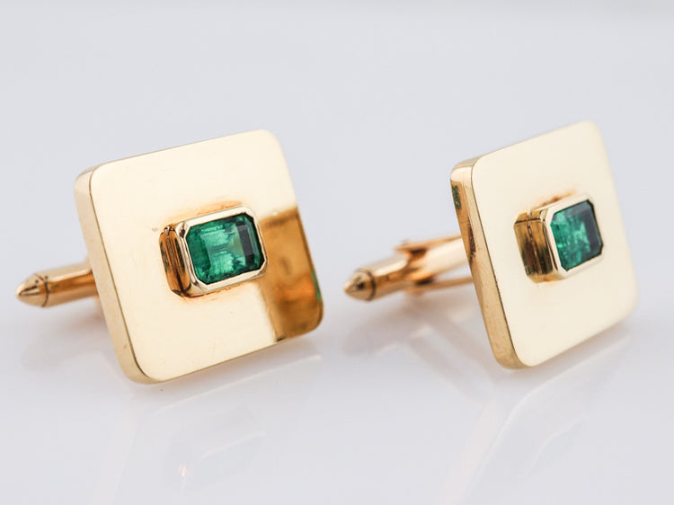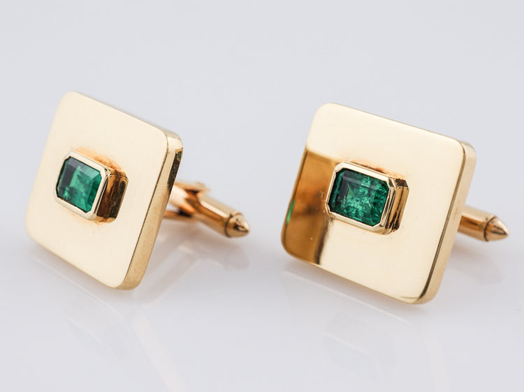 Men's Cufflinks 1.78 Emerald/Step Cut Emerald in 18k Yellow Gold