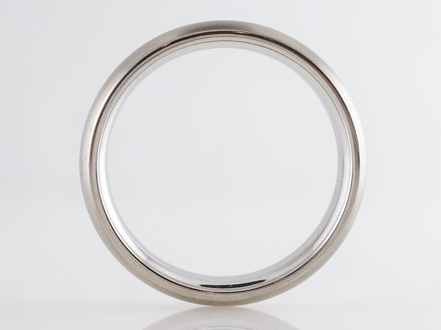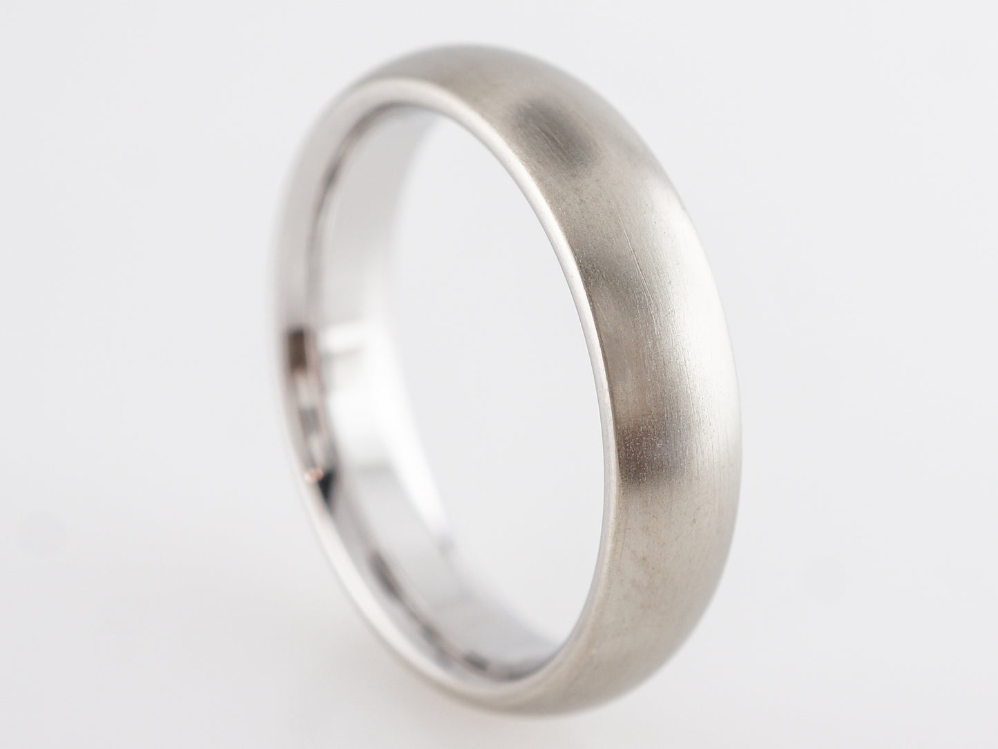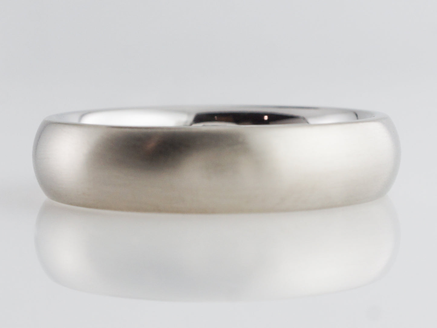 Mens Round Wedding Band w/ Brushed Finish in 14k. This wide modern men’s band is finished in 14 karat white gold. A simple wedding band with a nice brushed satin finish that gives the ring a bit of a worn in look.