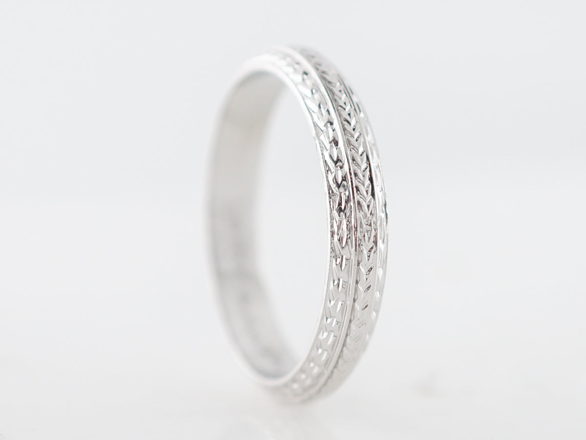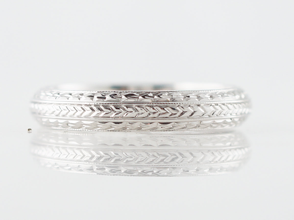 Men's Vintage Wedding Band Engraved Art Deco in 18k White Gold