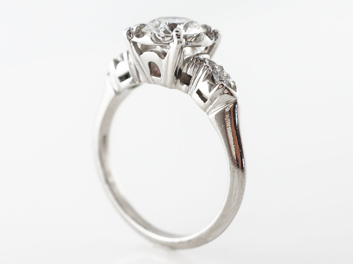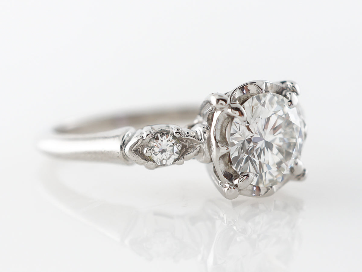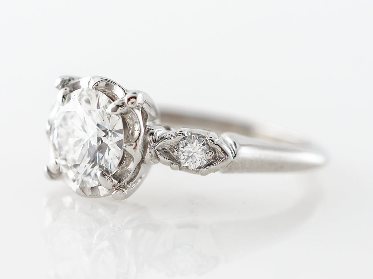 Mid-Century 1 Carat Diamond Engagement Ring Platinum