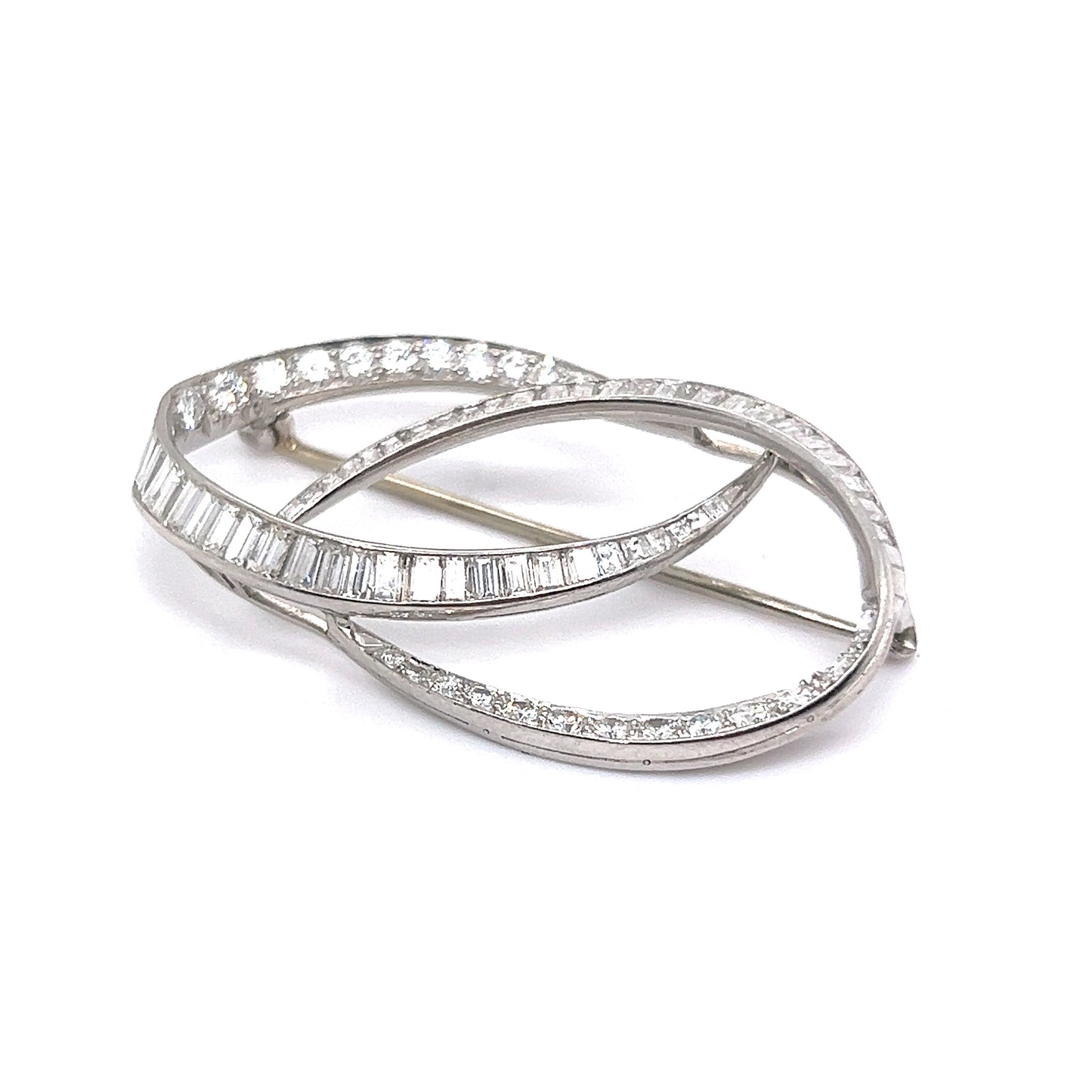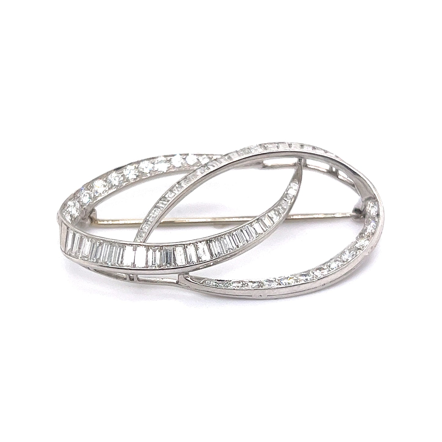 Mid-Century Brooch w/Round, Baguette, & Asscher Cut Diamonds