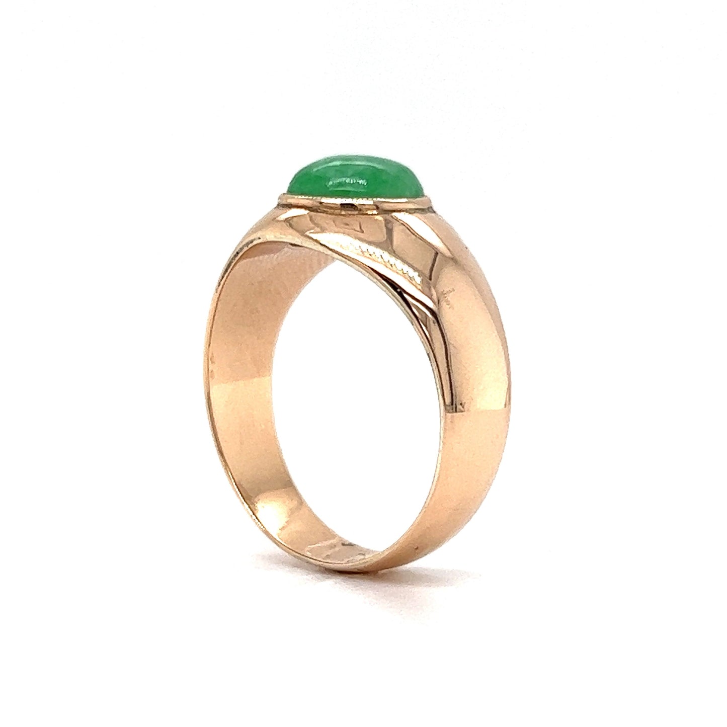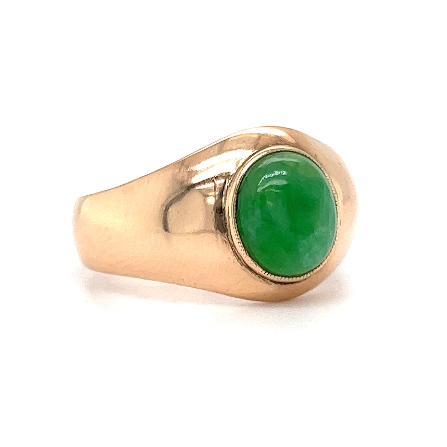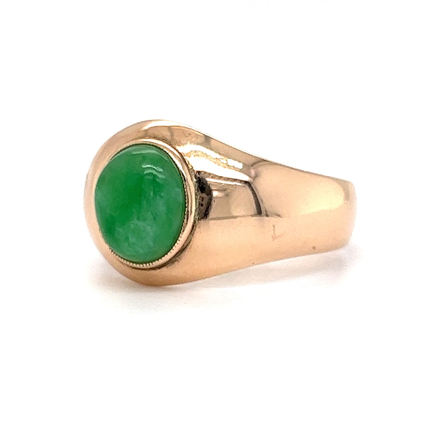 Mid-Century Cabochon Jade Cocktail Ring in 14k Rose Gold
