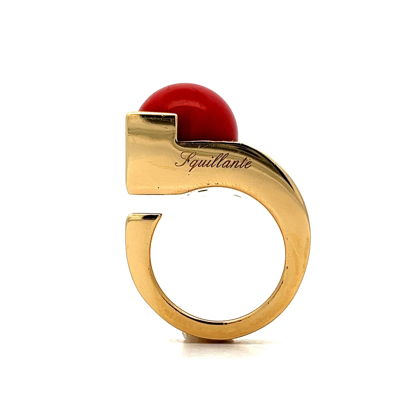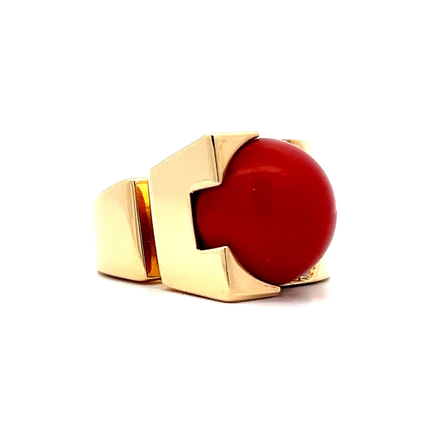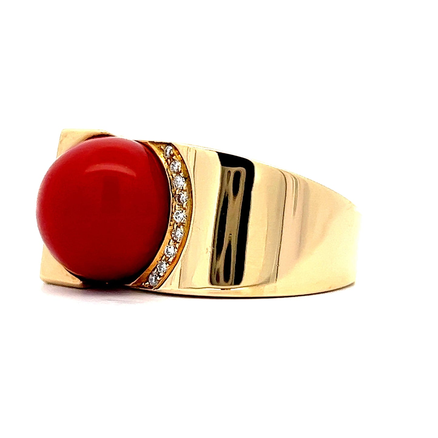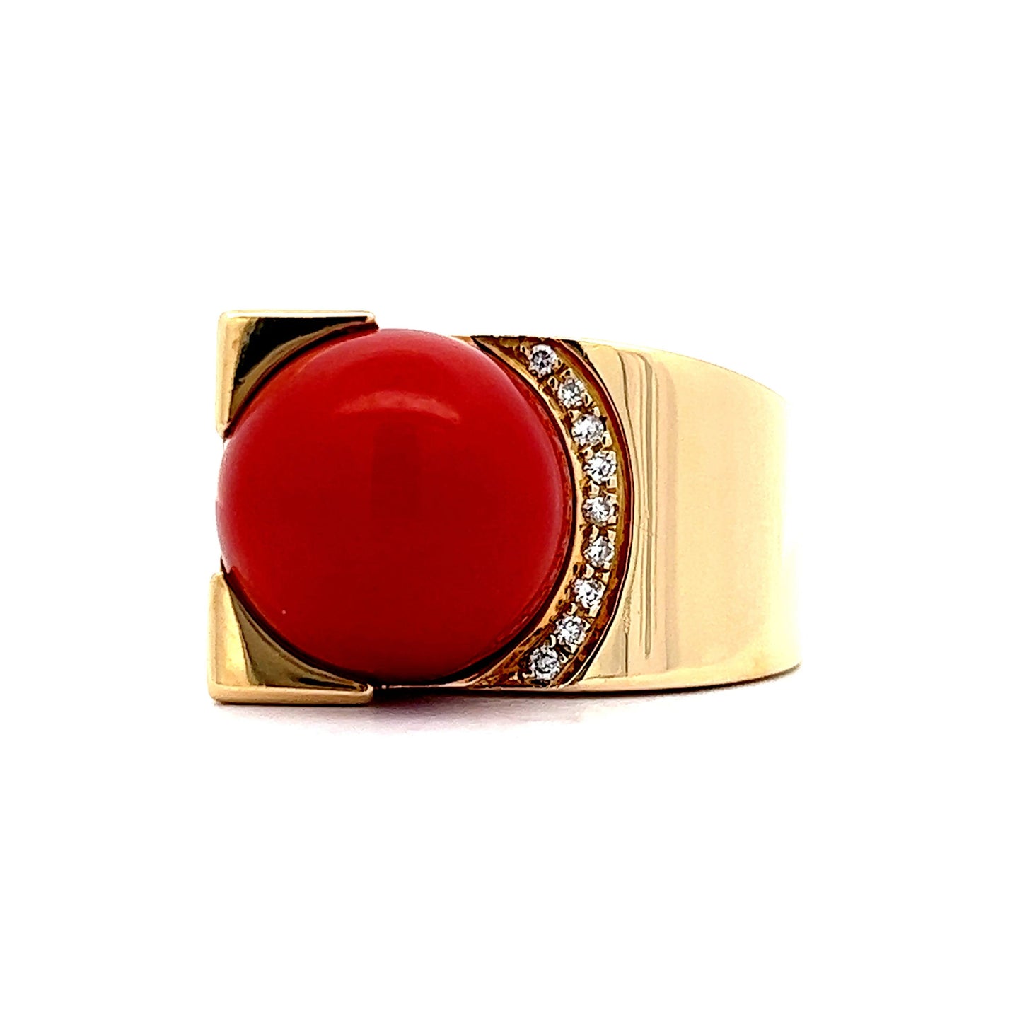Mid-Century Inspired Coral & Diamond Ring in 18k Yellow Gold