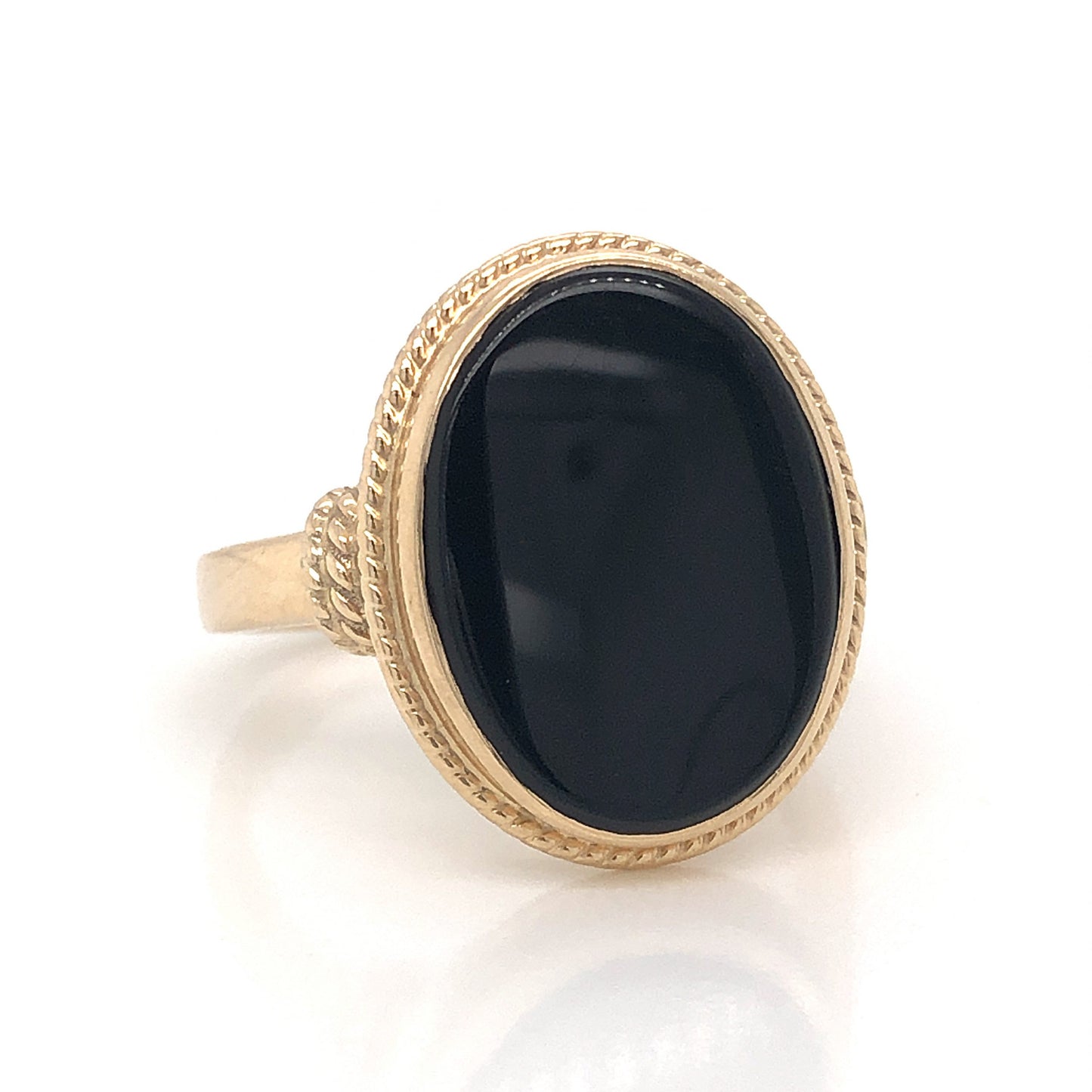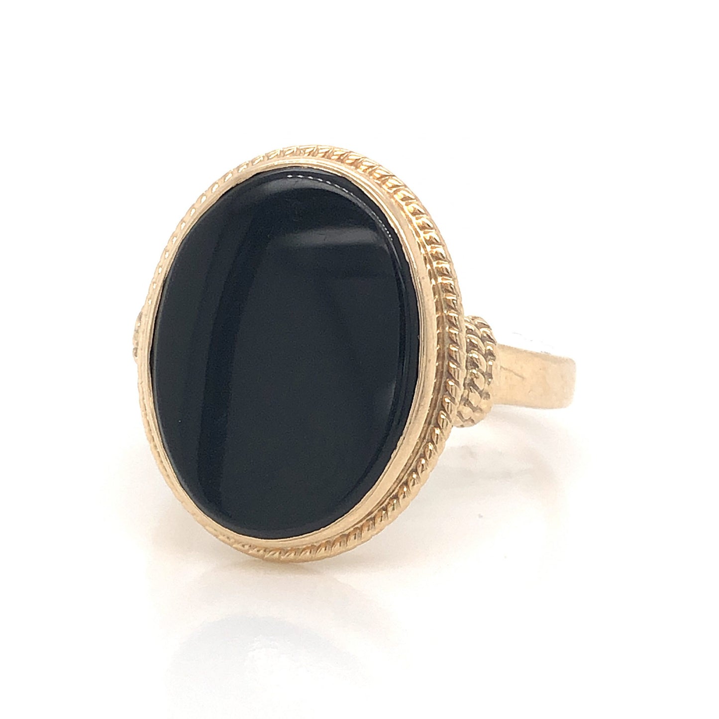 Mid-Century Onyx Cocktail Ring 14k Yellow Gold