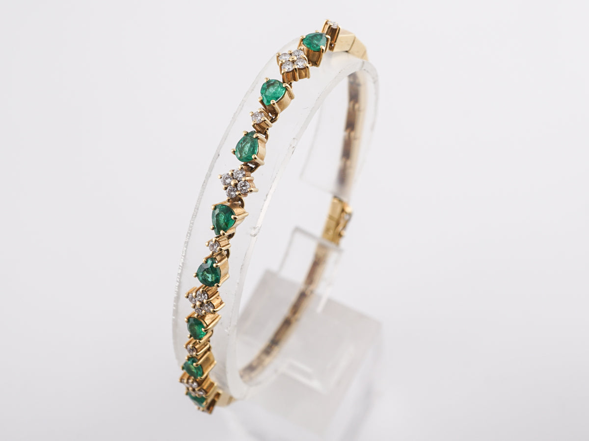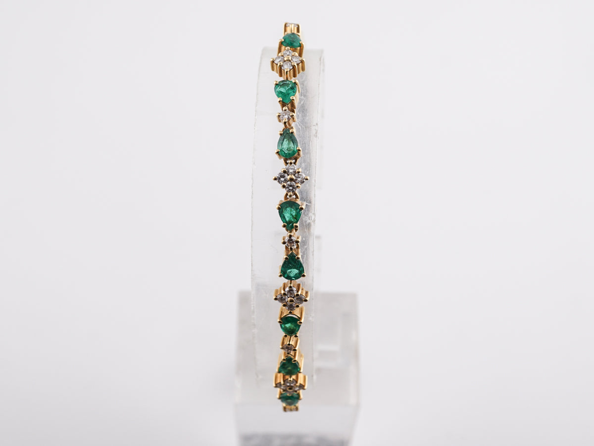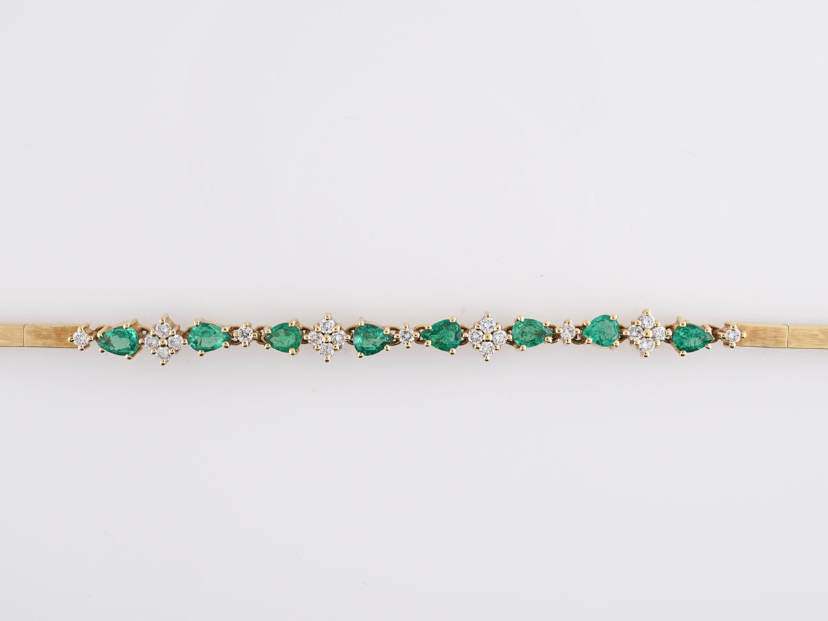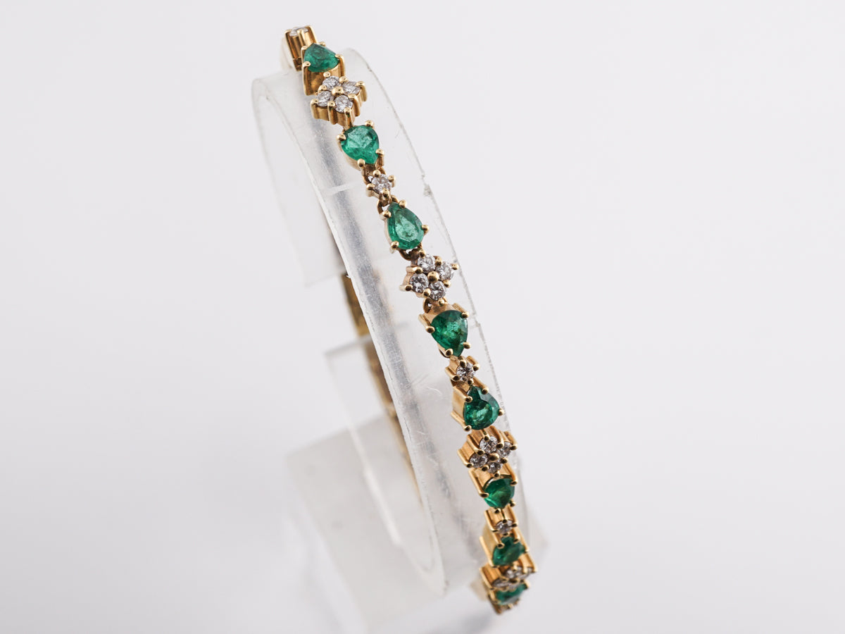 Mid-Century Pear Cut Emerald & Diamond Bracelet in 18K Yellow Gold