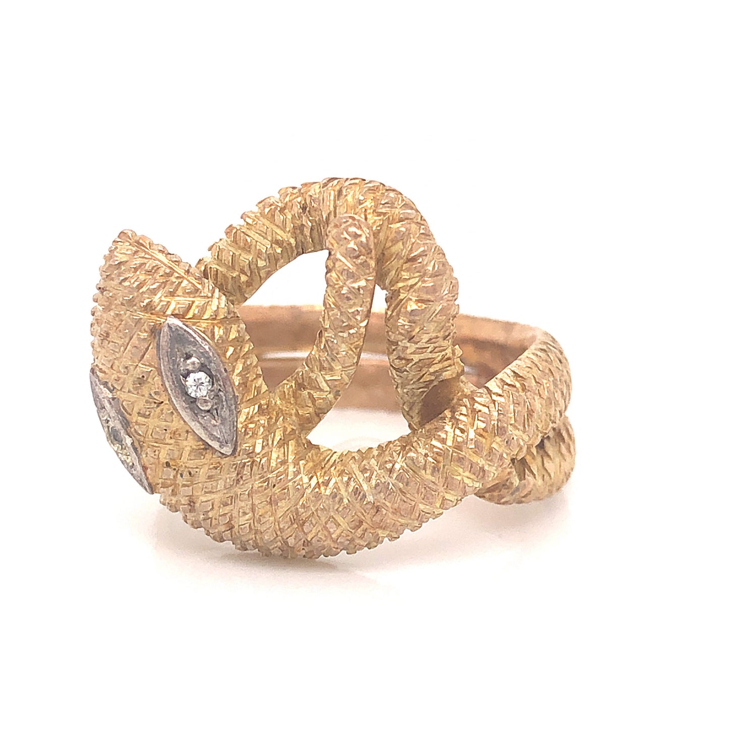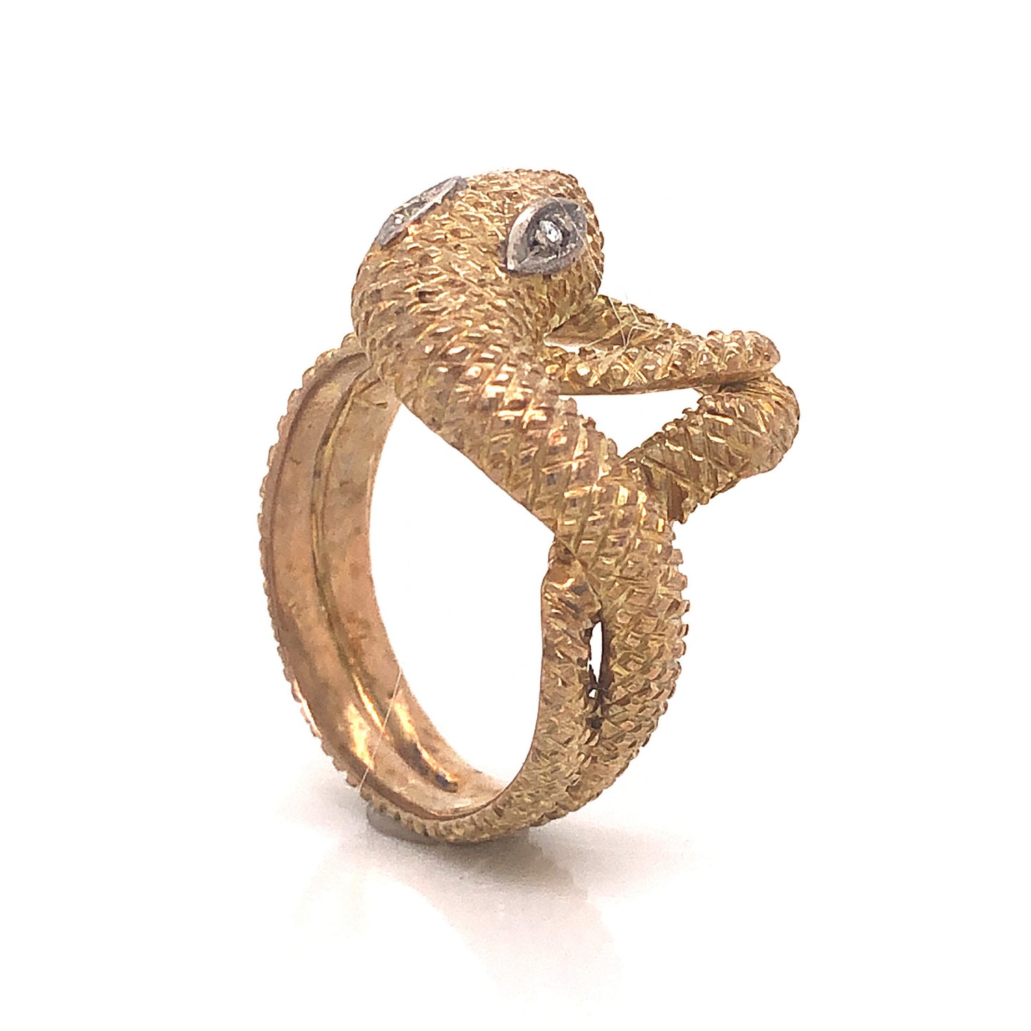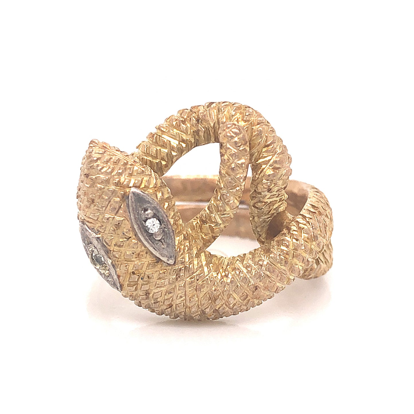 Mid-Century Textured Snake Ring in 14k Yellow Gold