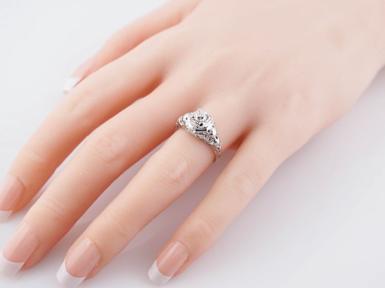 Mine Cut Art Deco Diamond Filigree Engagement Ring in 18k