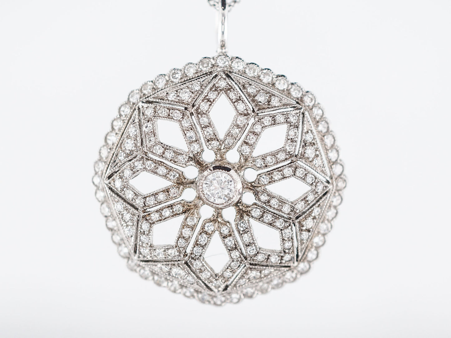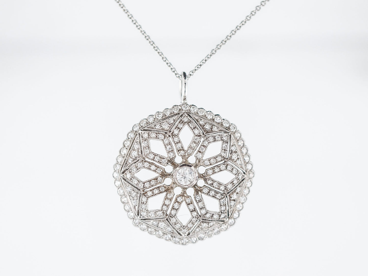 Modern Art Deco Style Pendant 1.30 Round Brilliant Cut Diamonds in 18k White Gold