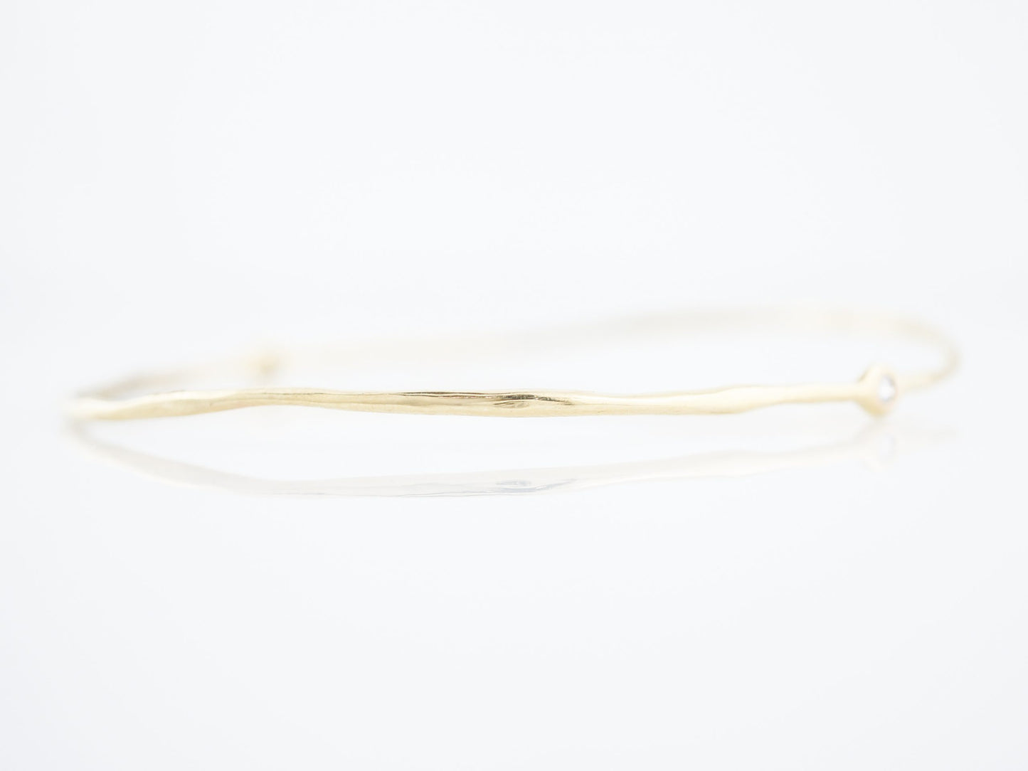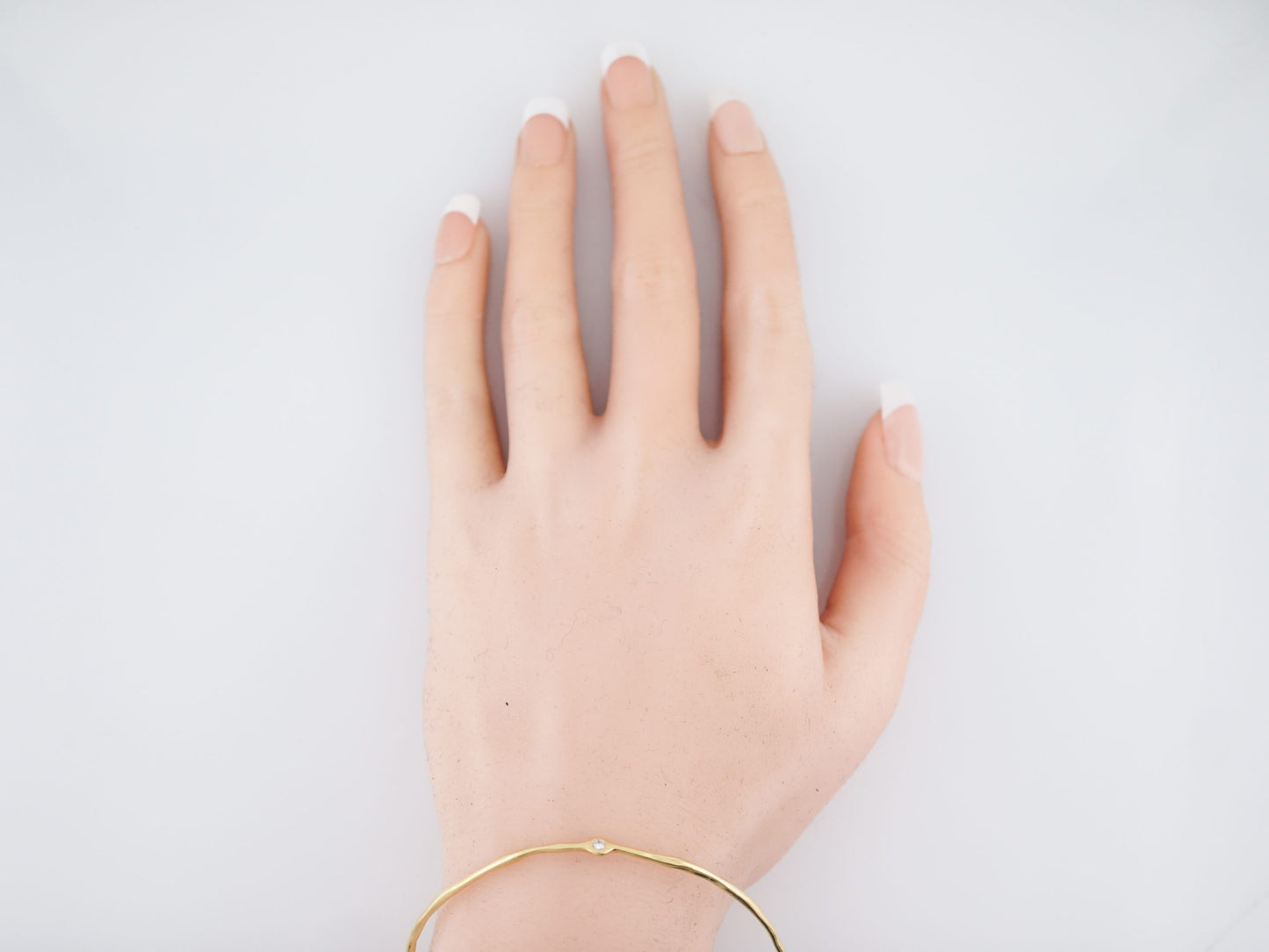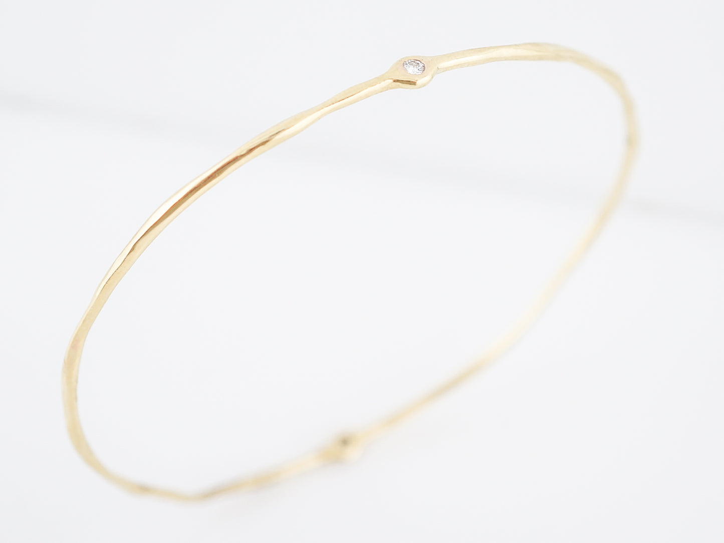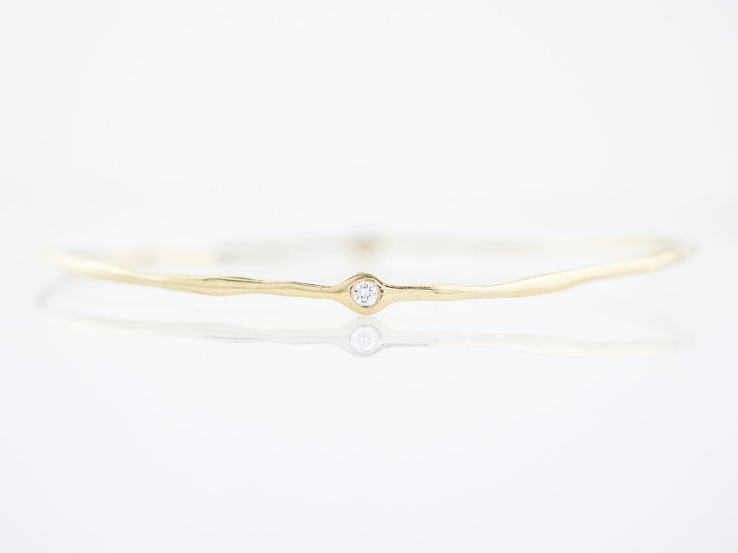 Modern Bracelet .10 Round Brilliant Cut Diamonds in 18k Yellow Gold. This modern bracelet features two (2) round brilliant cut diamonds in 18 karat yellow gold. The two diamonds are bezel set and total .10 carats. This easy to wear bracelet is a wonderful addition to any collection.
