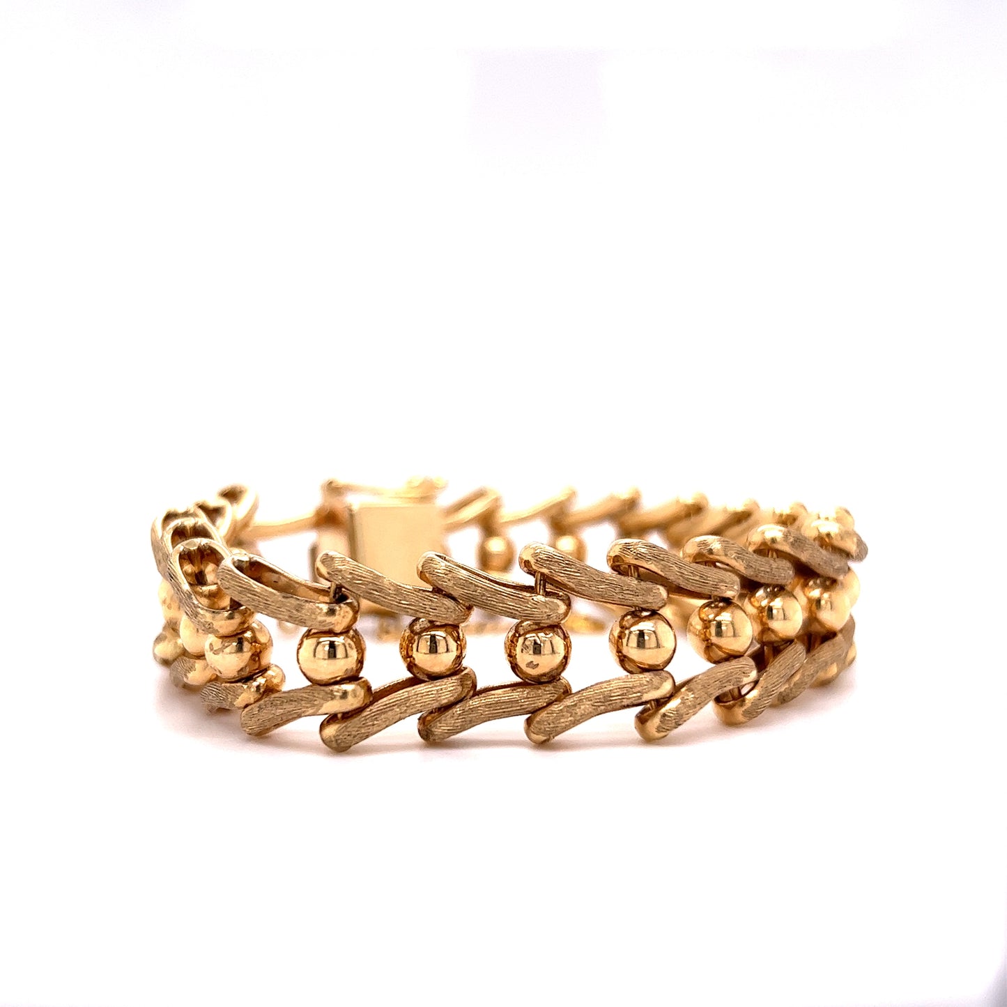This gorgeous 14k yellow gold bracelet has an incredible look and is great for everyday wear. Woven strands of gold give the bracelet a beautiful texture yet the negative space creates an airy lightness. Geometric expertly designed. This versatile piece can be great for everyday wear or a special night out!