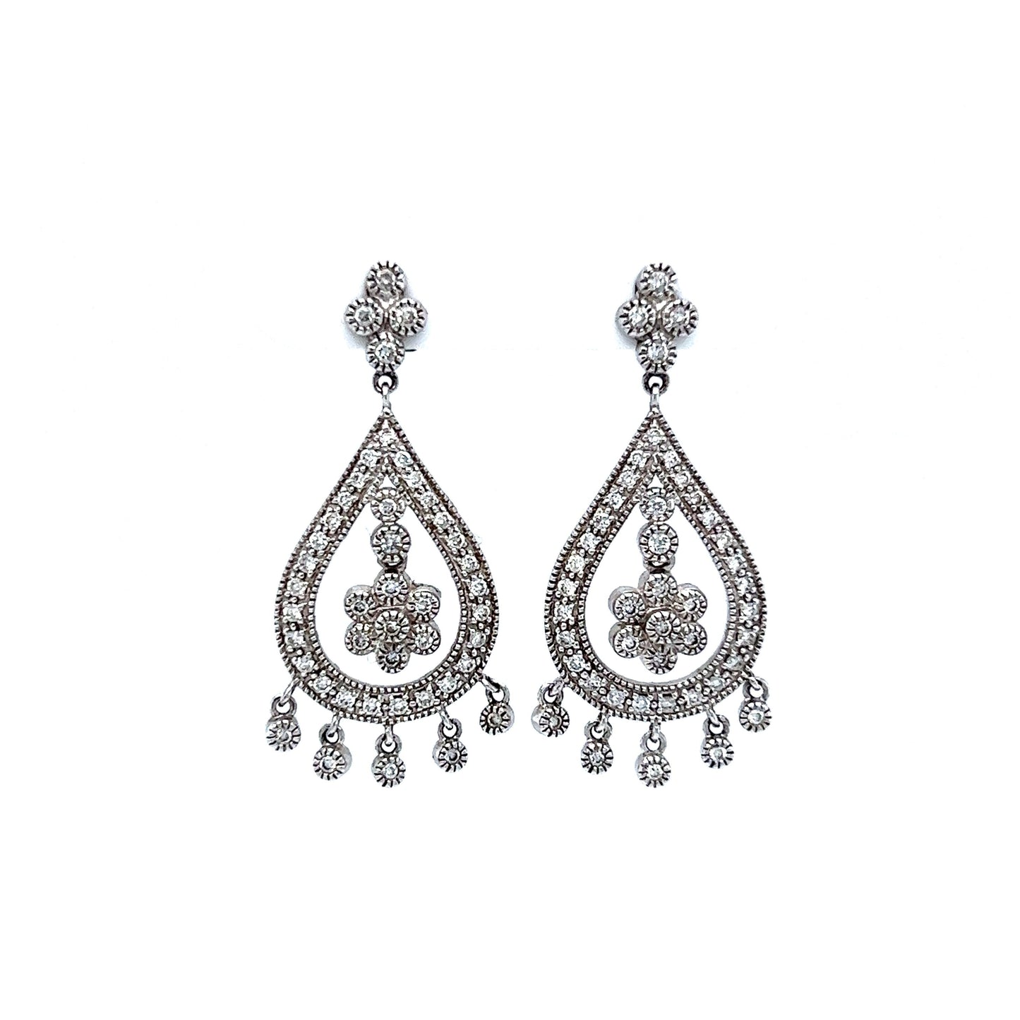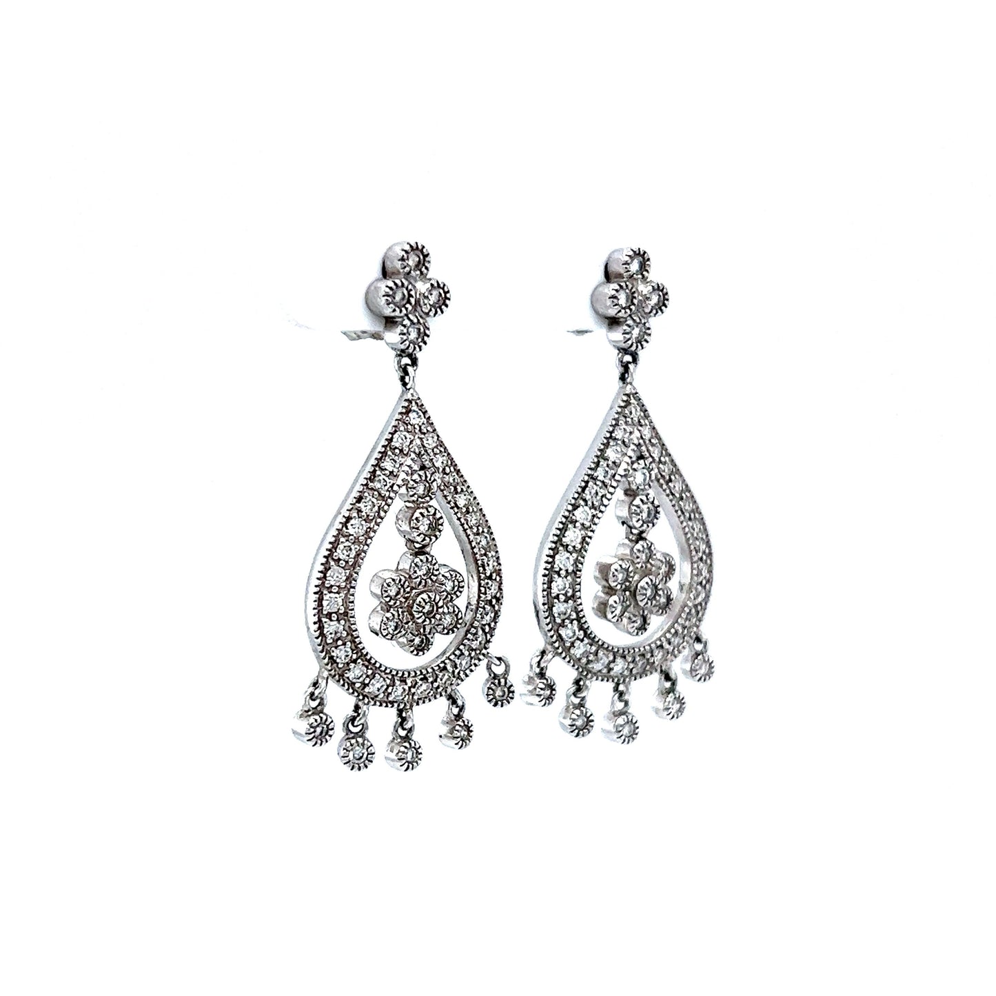 Antique Style Chandelier Diamond Dangle Earrings in 14k White Gold