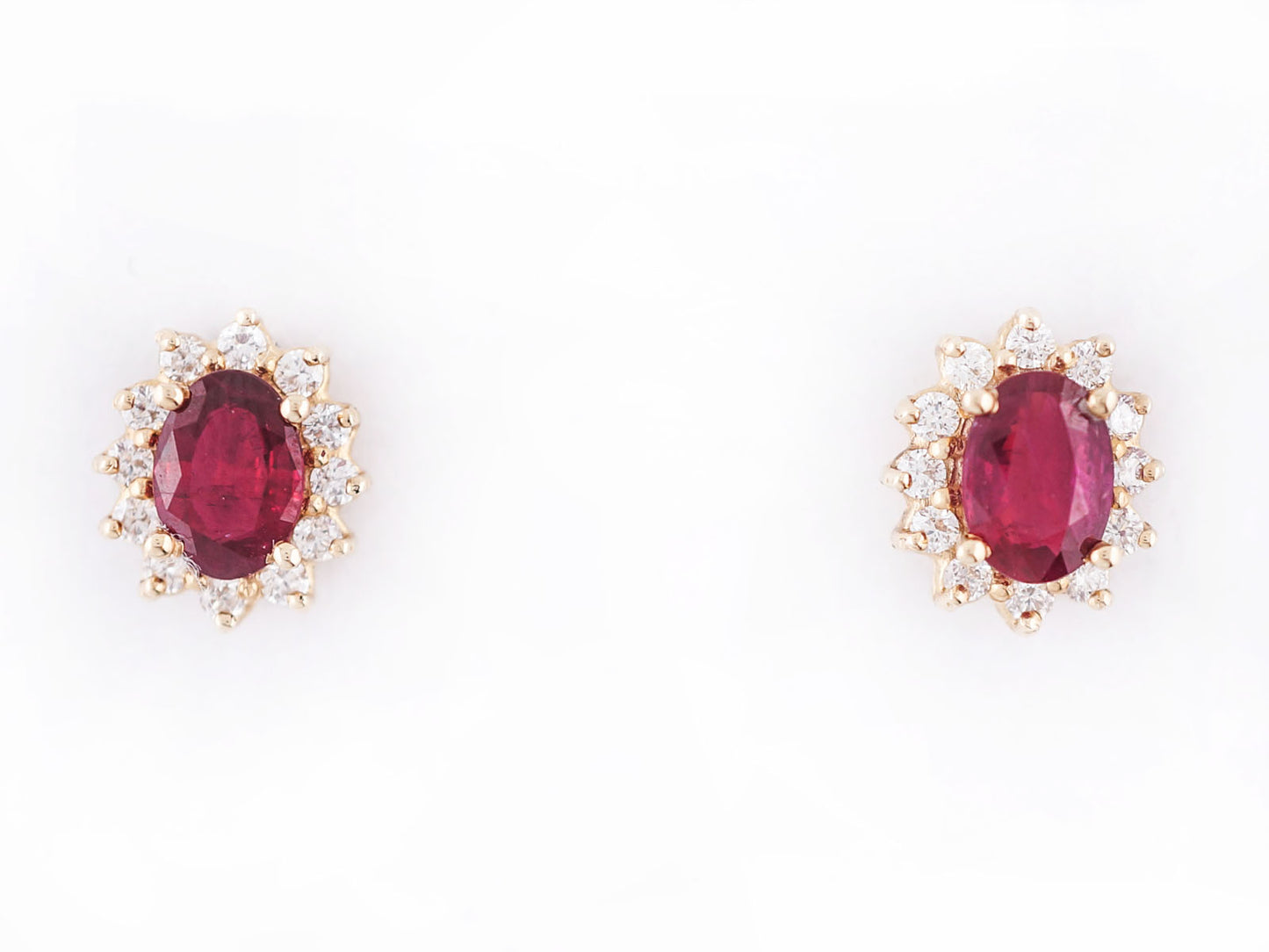 Modern Earrings 1.48 Oval Cut Ruby & .40 Round Brilliant Cut Diamonds in 14k Yellow Gold