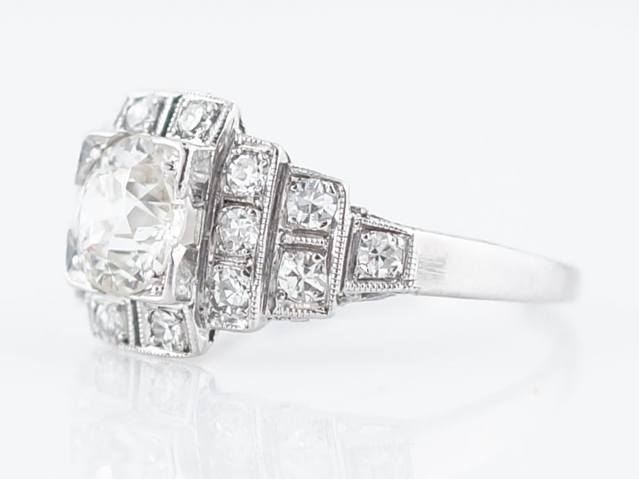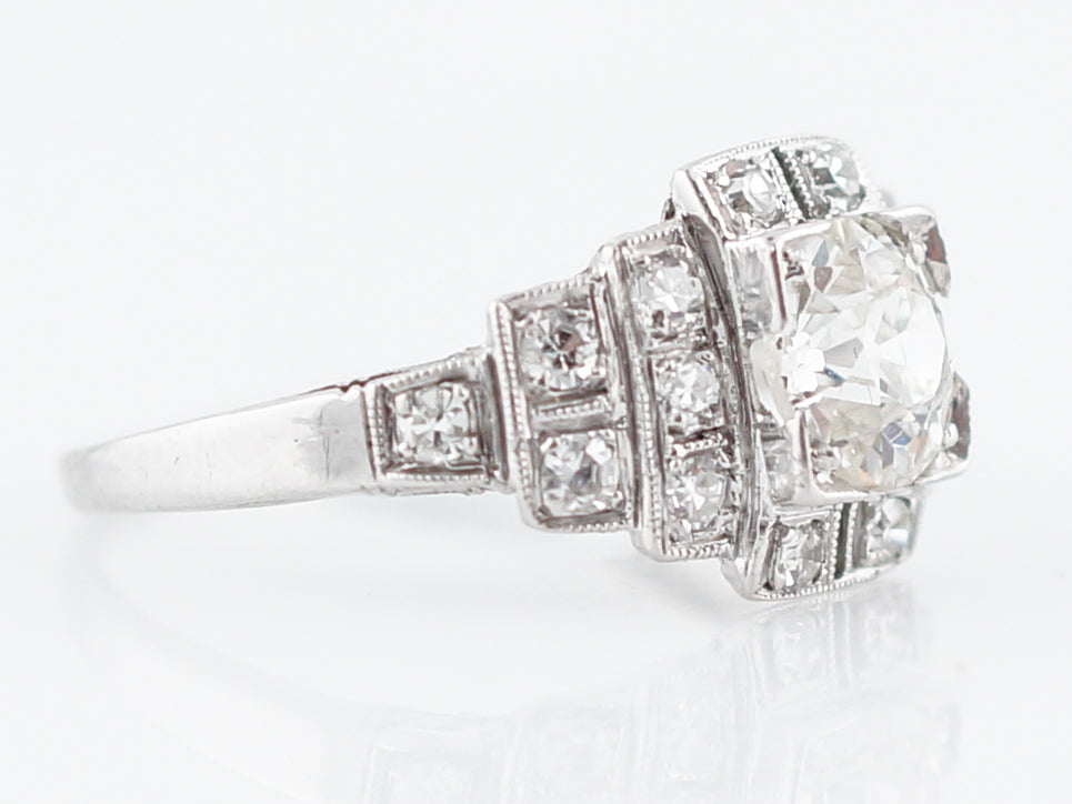 Antique Engagement Ring Art Deco .90 Old European Cut Diamond in Platinum