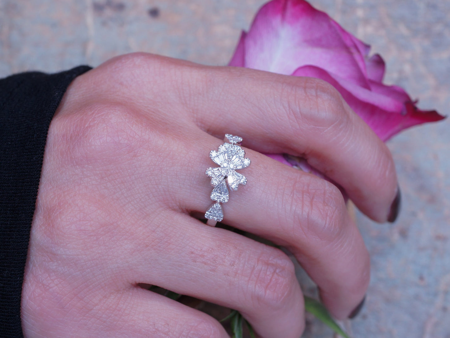 Modern Flower Ring w/ Diamonds in 18k White Gold
