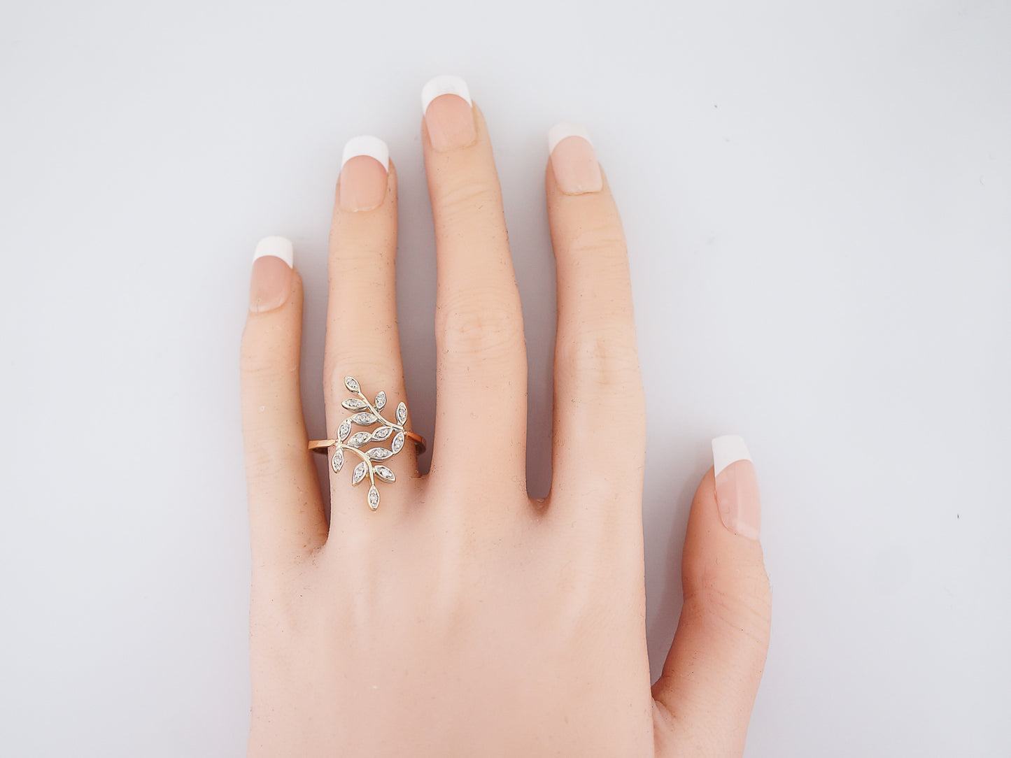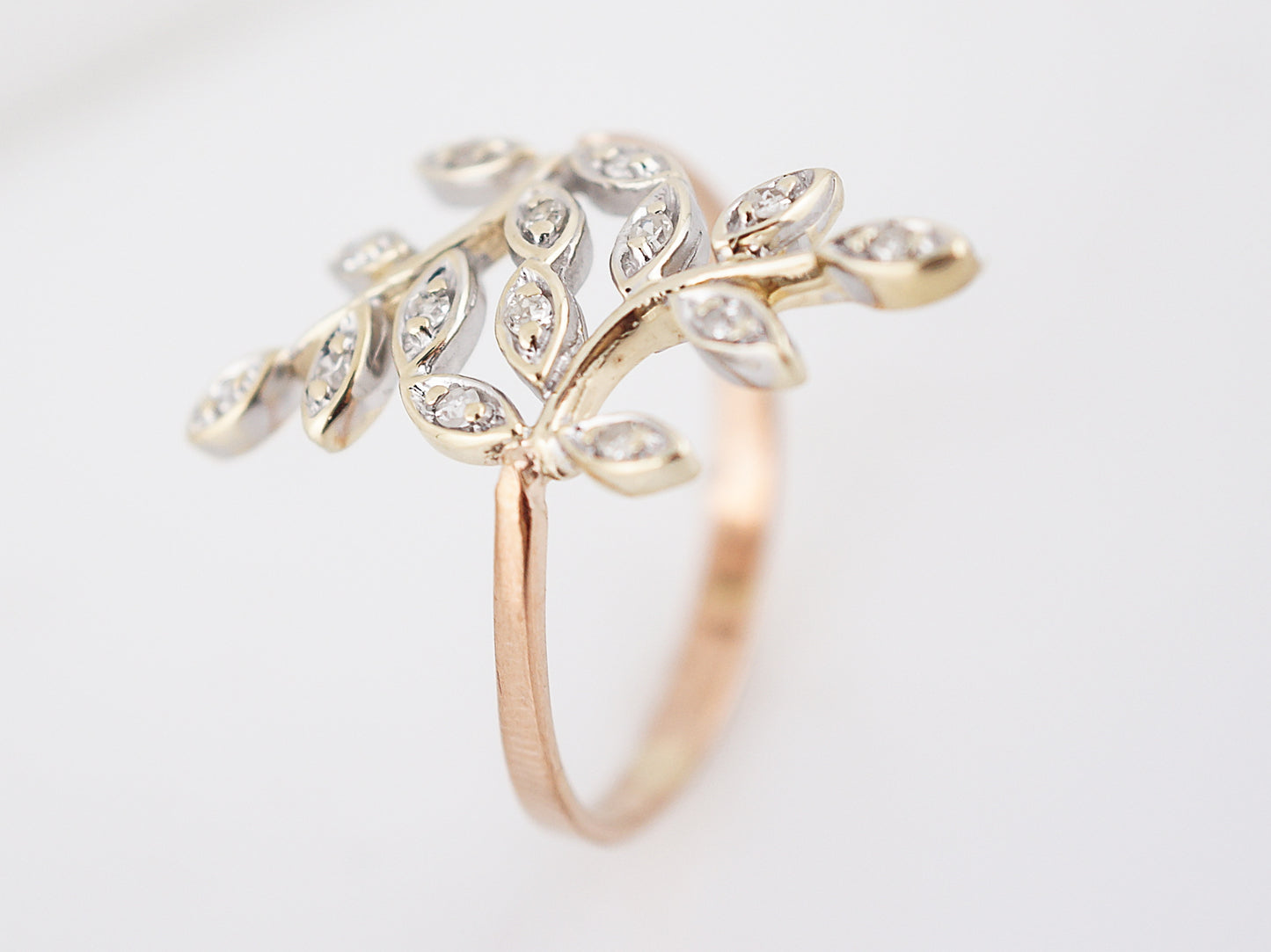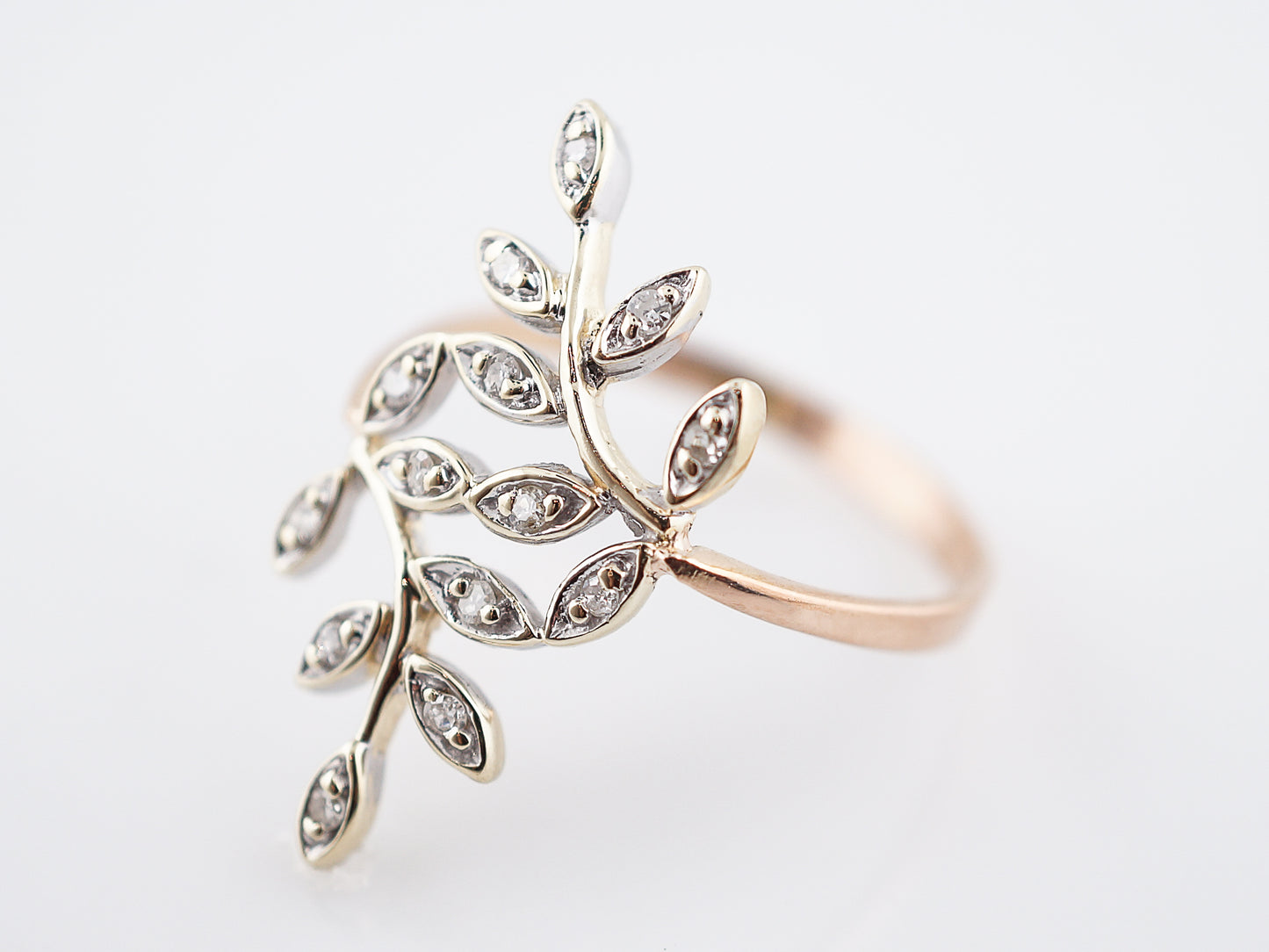 Modern Leaf Motif Ring .14 Single Cut Diamonds in 14K Rose & Yellow Gold