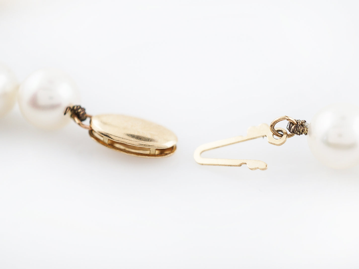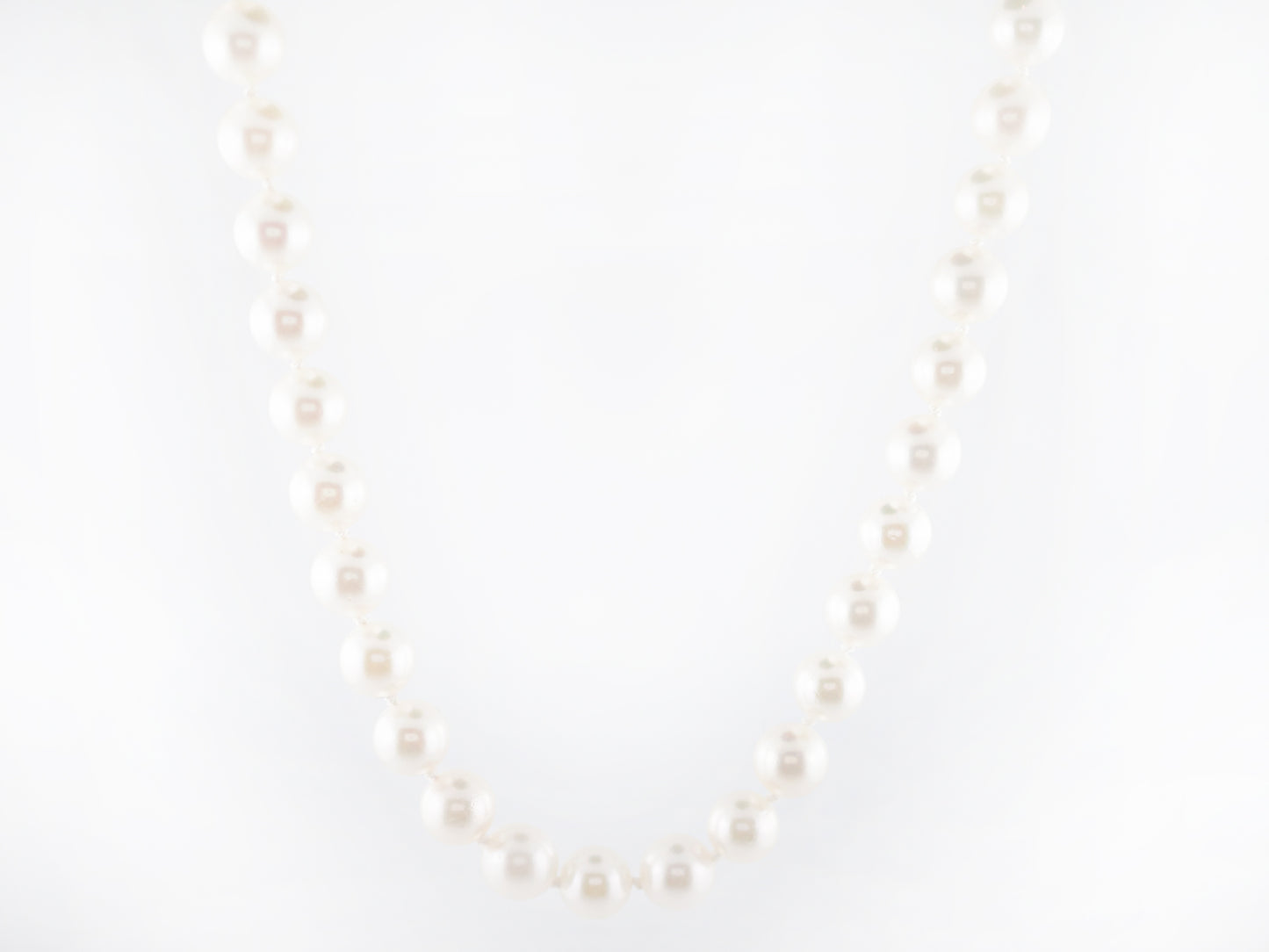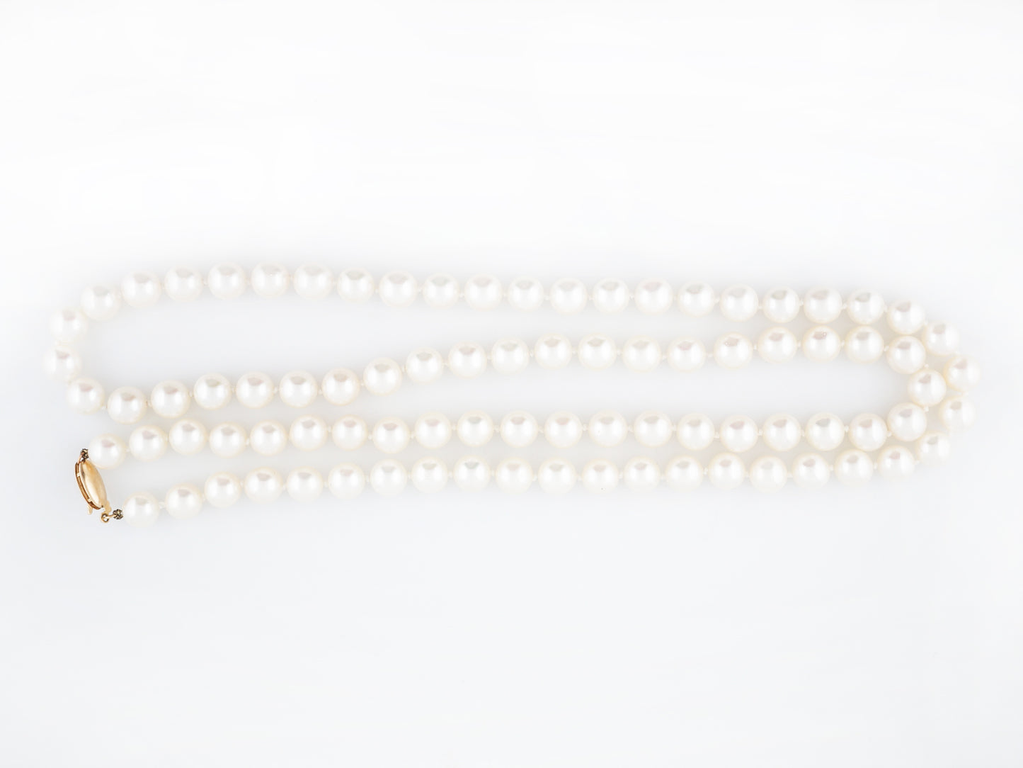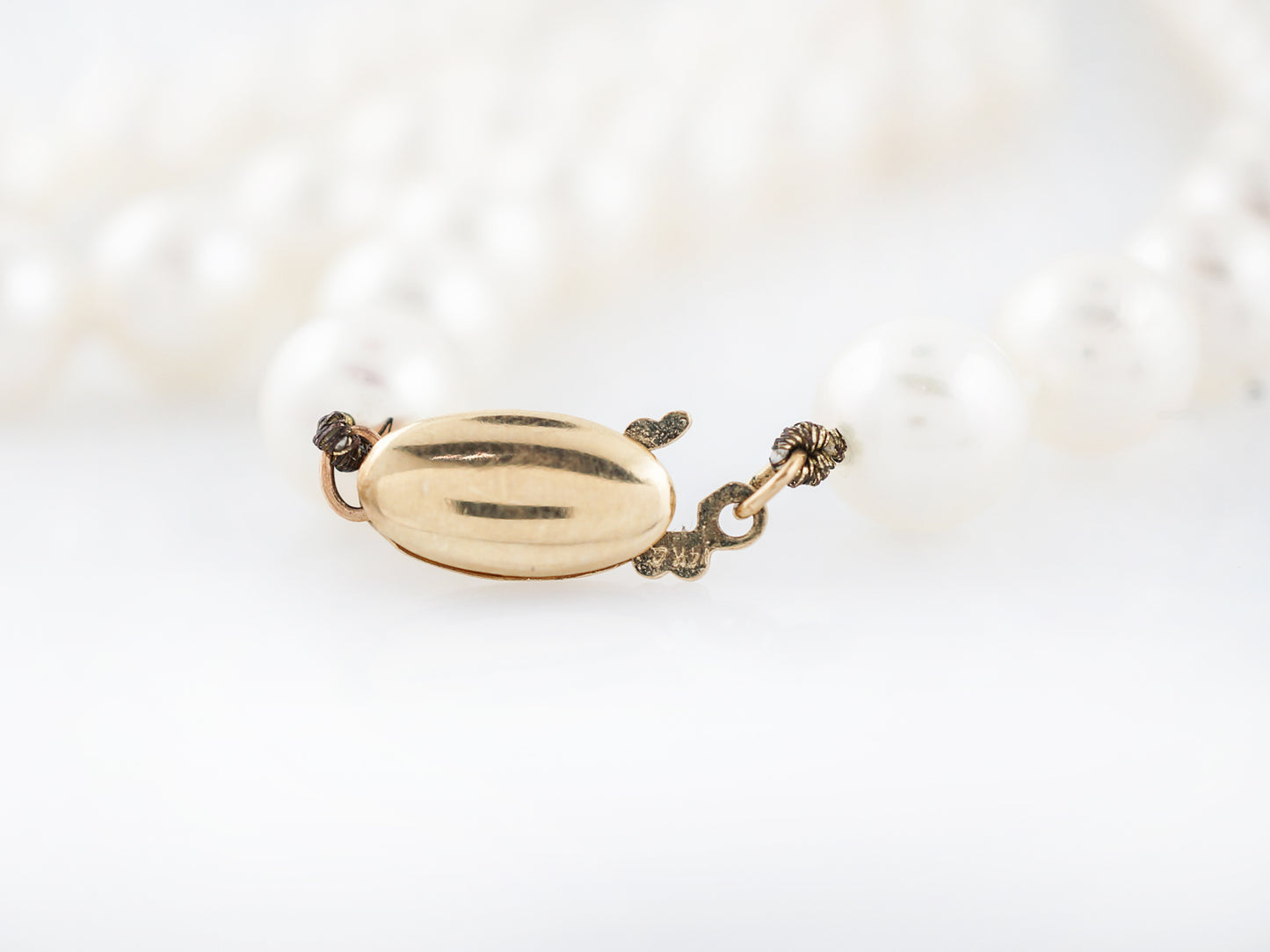 This necklace is timeless for good reason! Featuring a strand of pearls, the necklace is hand knotted which keeps the gems from rubbing up against each other. The secure clasp is made with polished 14k yellow gold. Pearl jewelry looks beautiful on everyone and make terrific gifts for any special occasion!