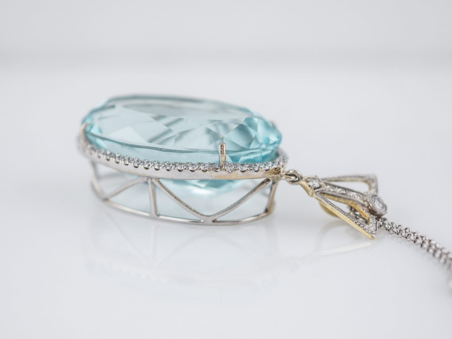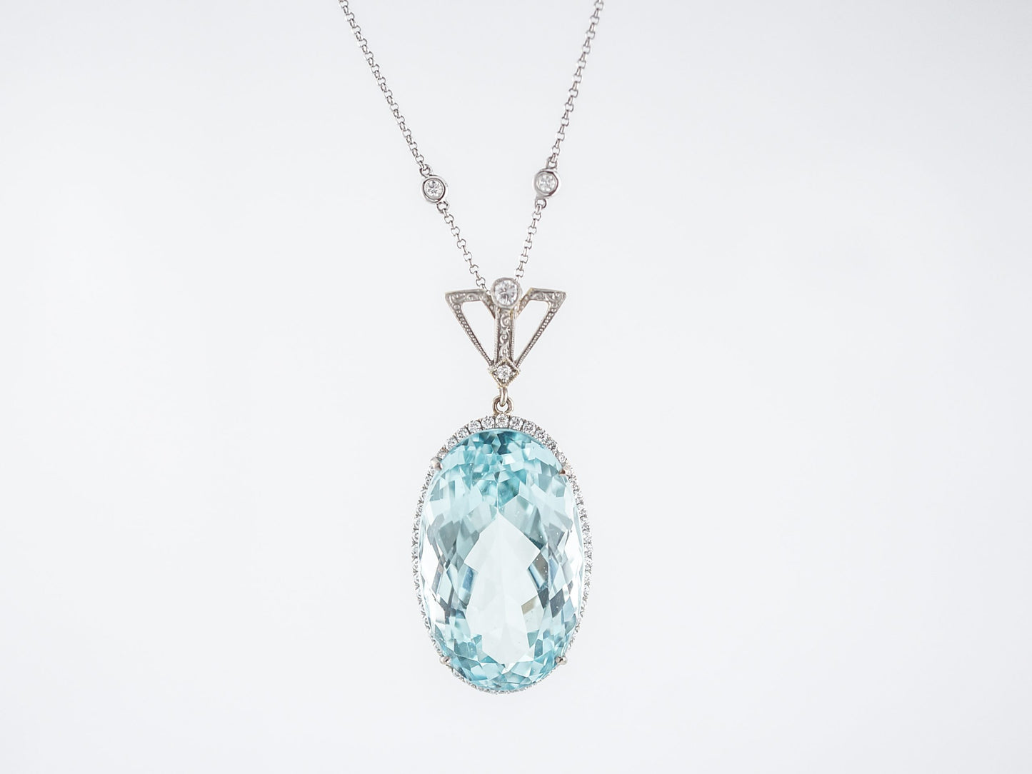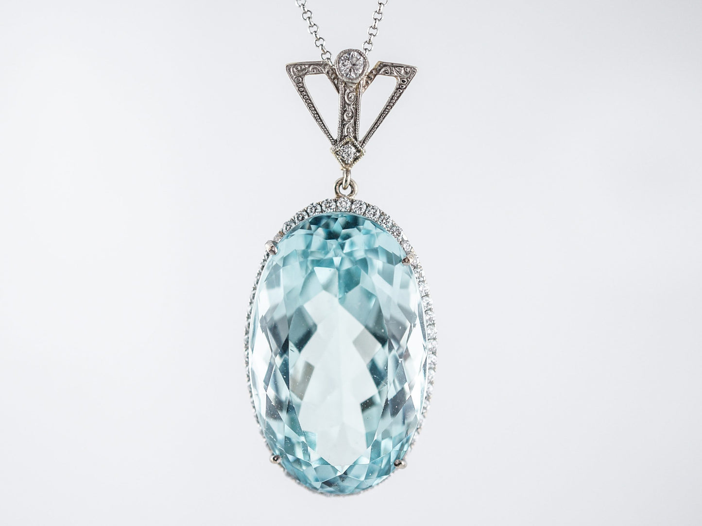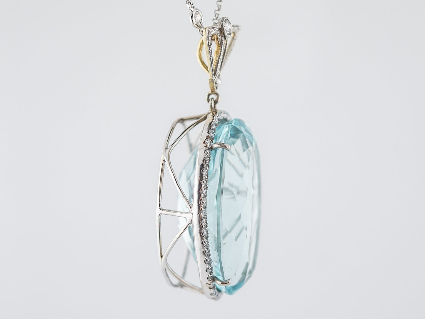 Modern Pendant 29.29 Oval Cut Aquamarine & 1.15 Round Brilliant Cut Diamonds in 18k White Gold