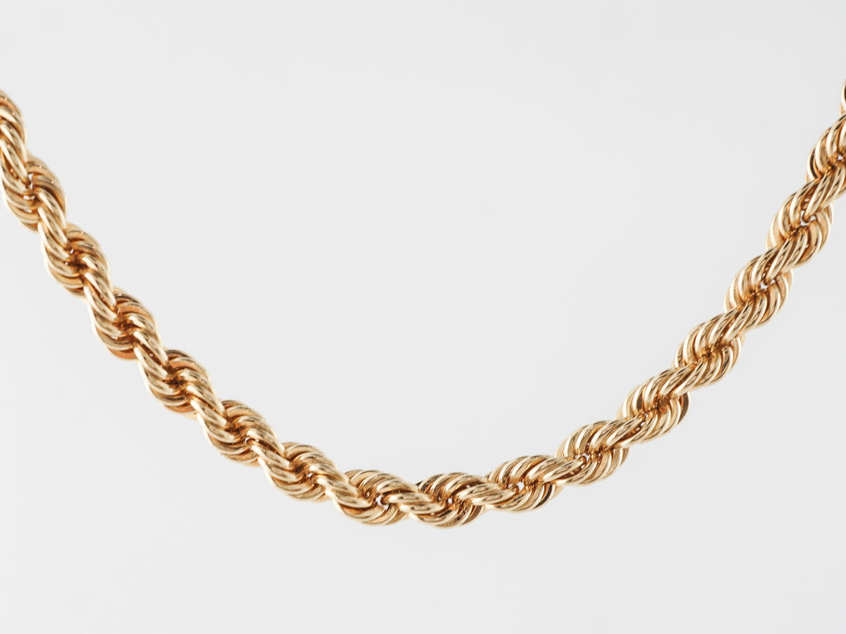 This modern 26 inch chain necklace in 14 karat yellow gold is a staple for any jewelry collection. The links in this chain are very intricate and ripple together beautifully. Wear it with your favorite pendant and add simple style to any outfit!