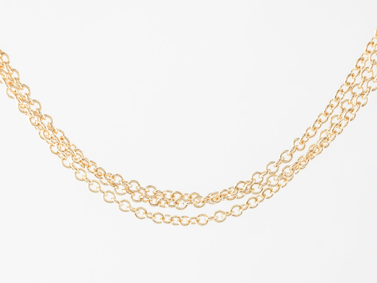 Multi Strand Necklace in 14k Yellow Gold. This 14 karat yellow gold multi-strand chain can be a very versatile piece in your collection. A chain that allows you to wear multiple charms or none, but will still look great at a comfortable length around your neck.
