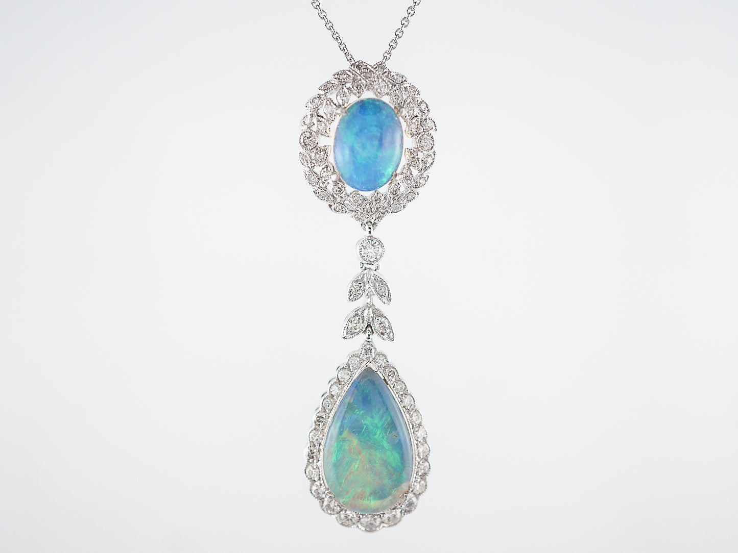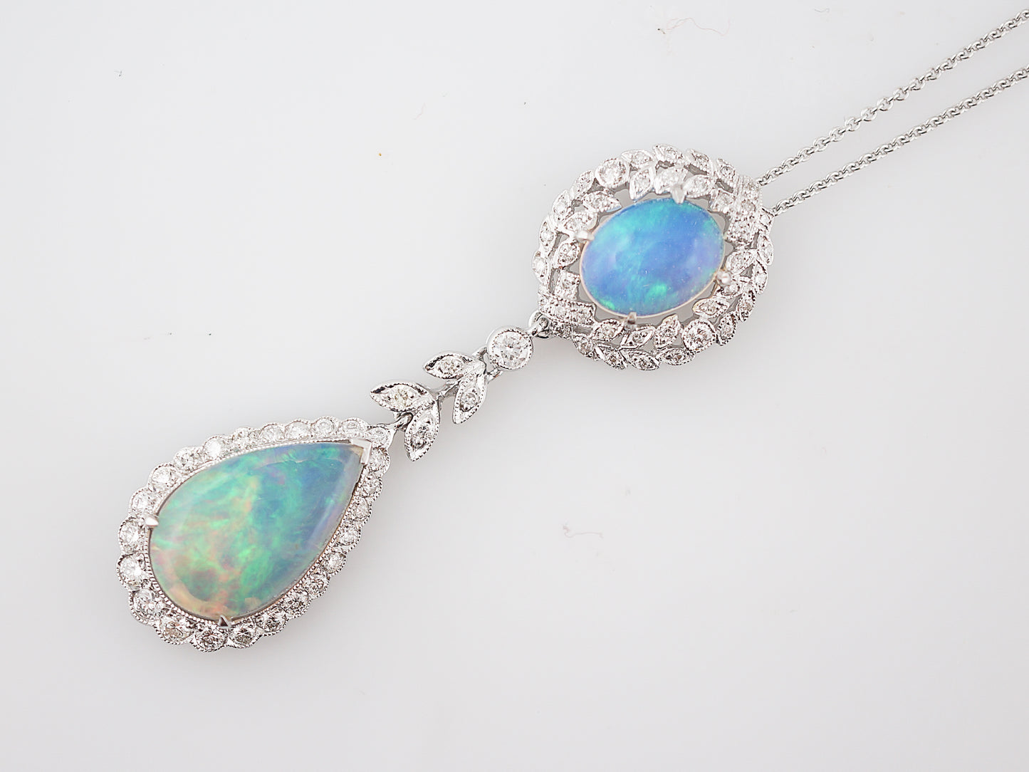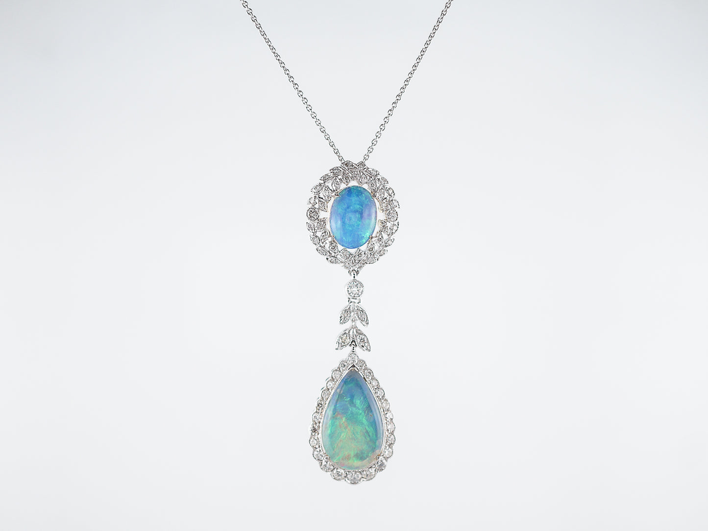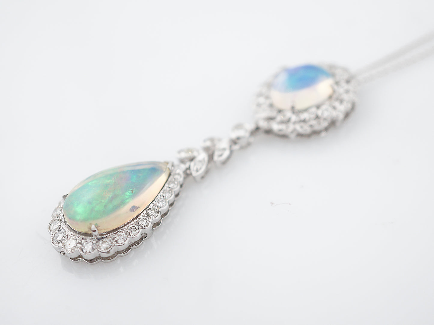 Necklace Modern 3.16 Oval & Pear Cut Opals & .63 Round Brilliant Cut Diamonds in 18K White Gold