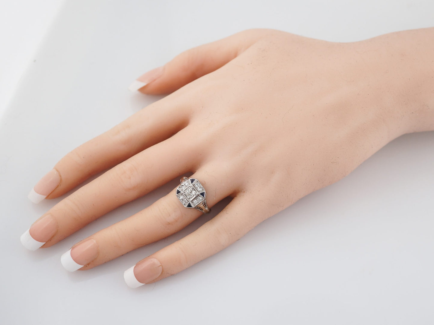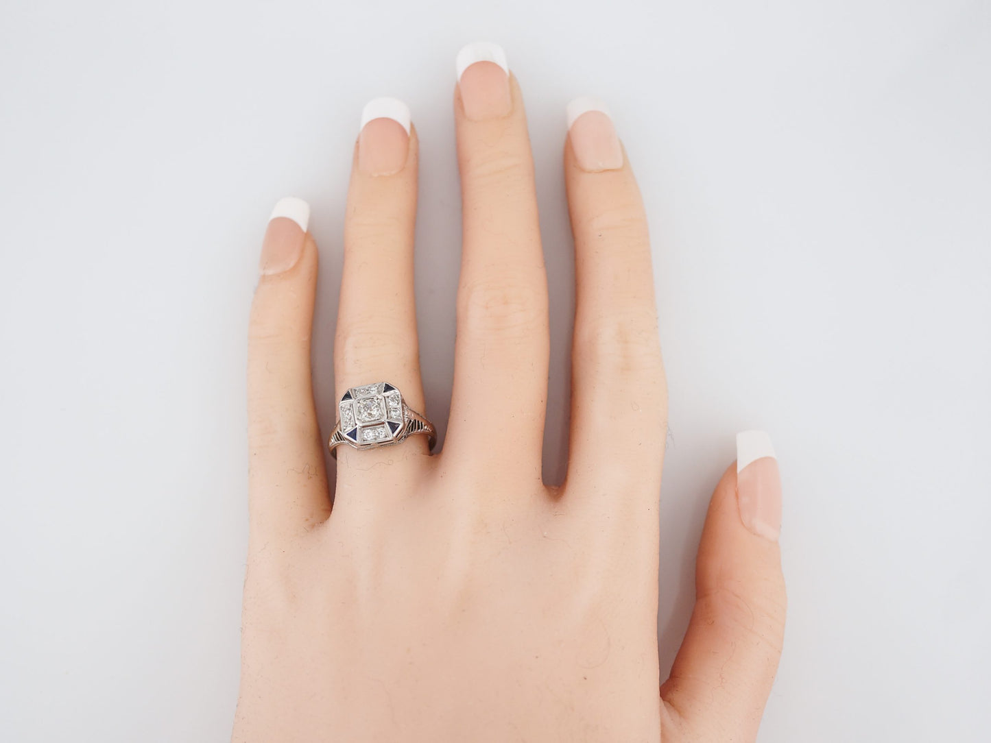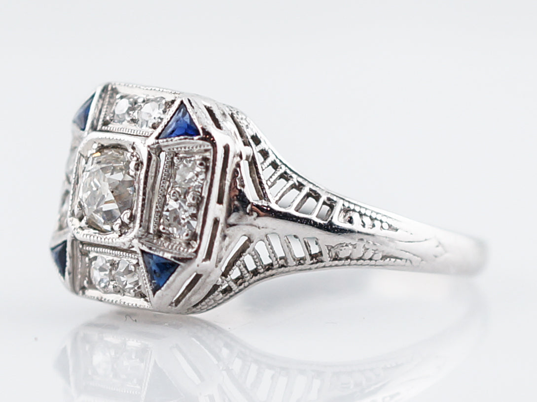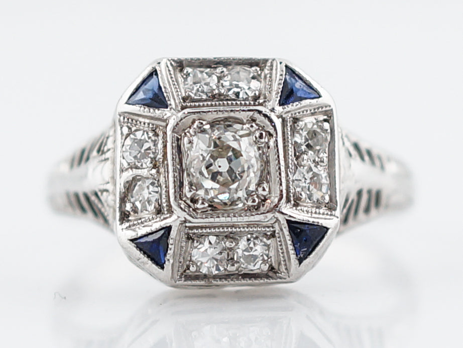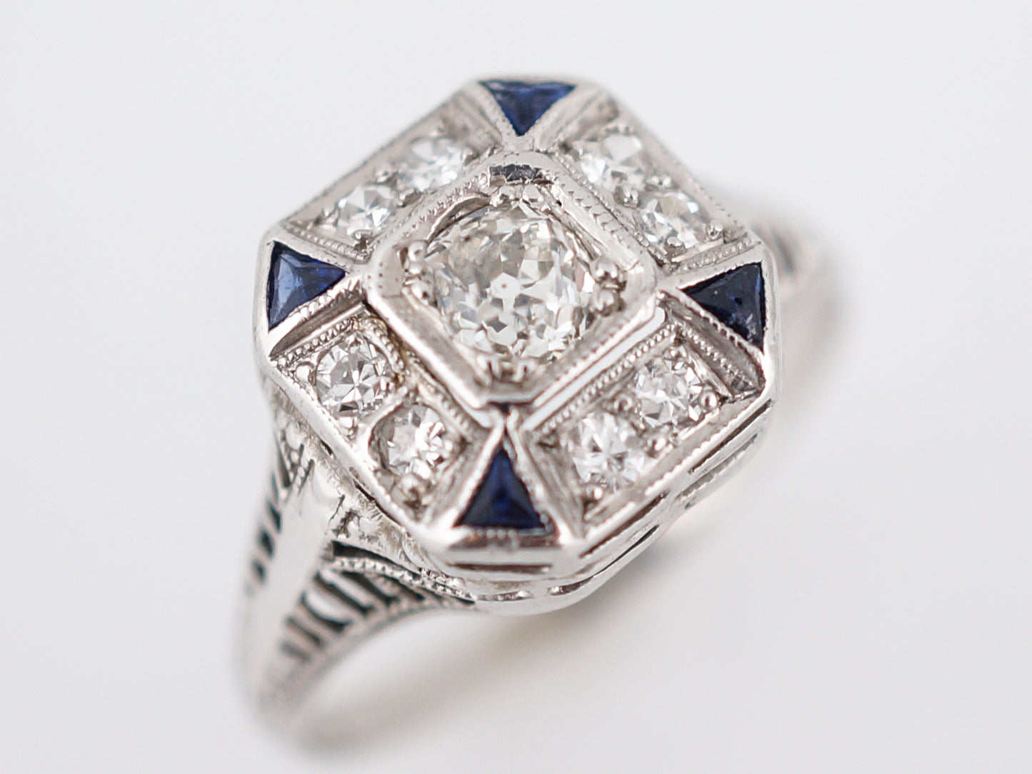 Old Euro Diamond & Sapphire Engagement Ring in 18k