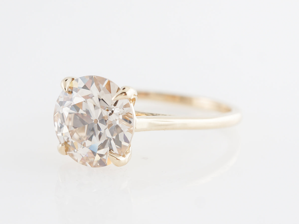 Old European Cut 3.27 Brown Diamond Engagement Ring in 14k Yellow Gold