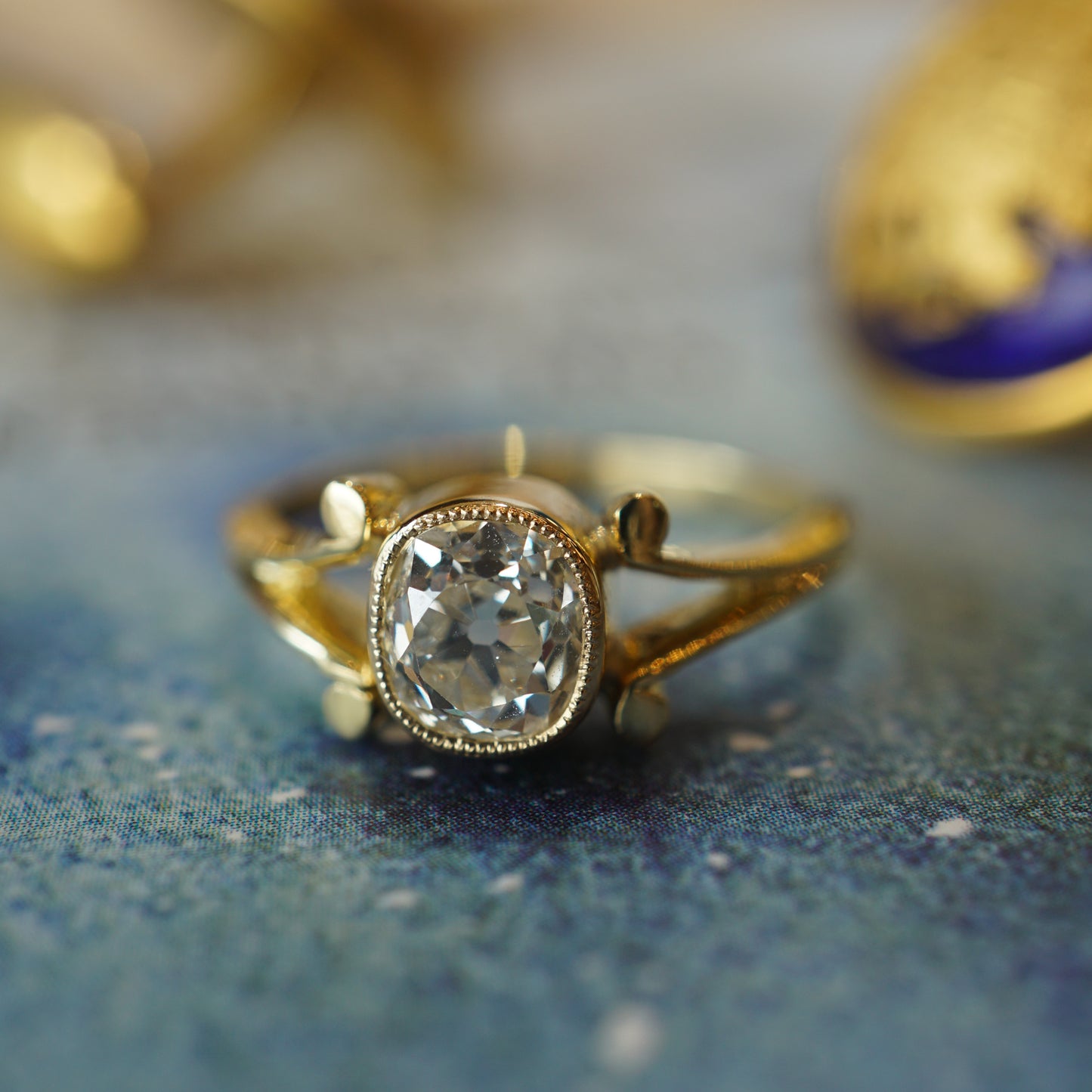 Old European Cut Bezel Set Diamond Engagement Ring in 18k