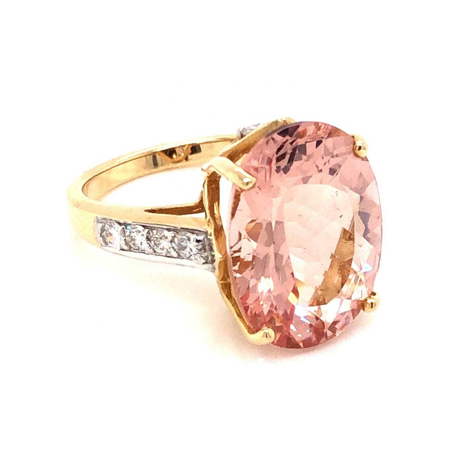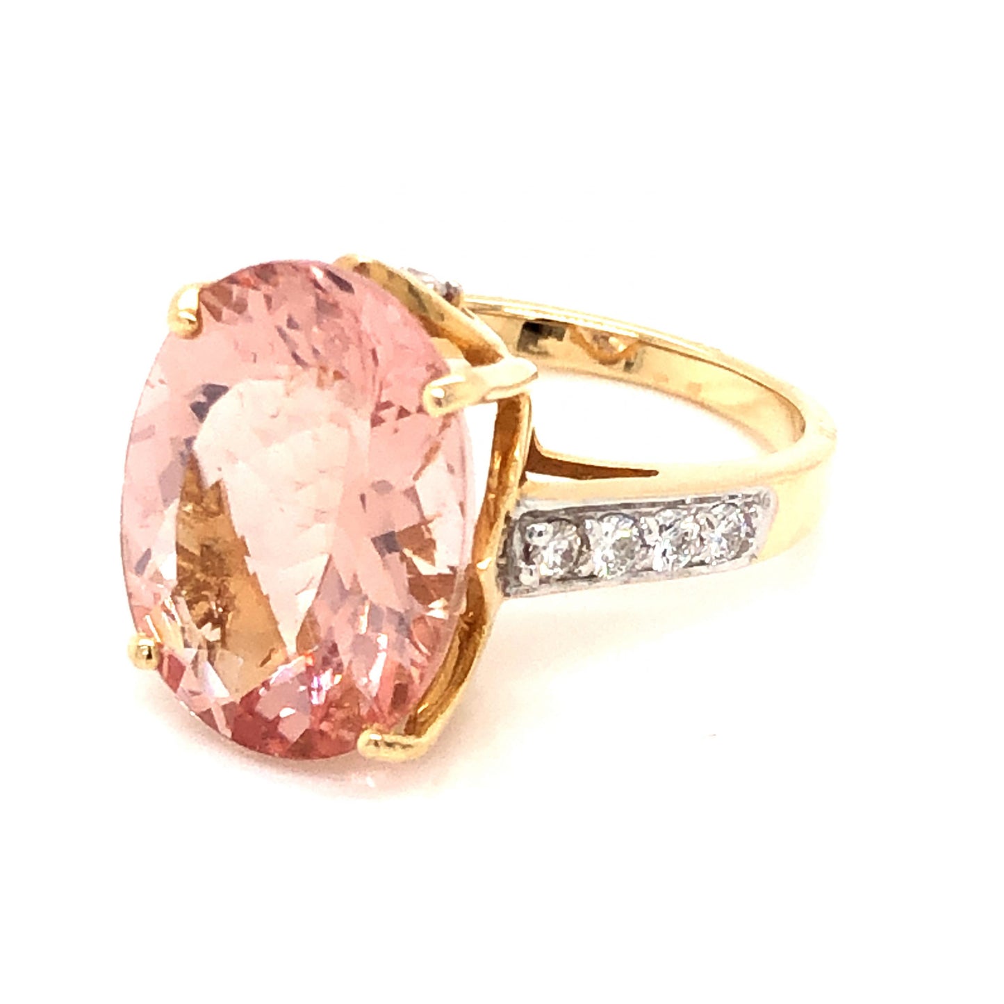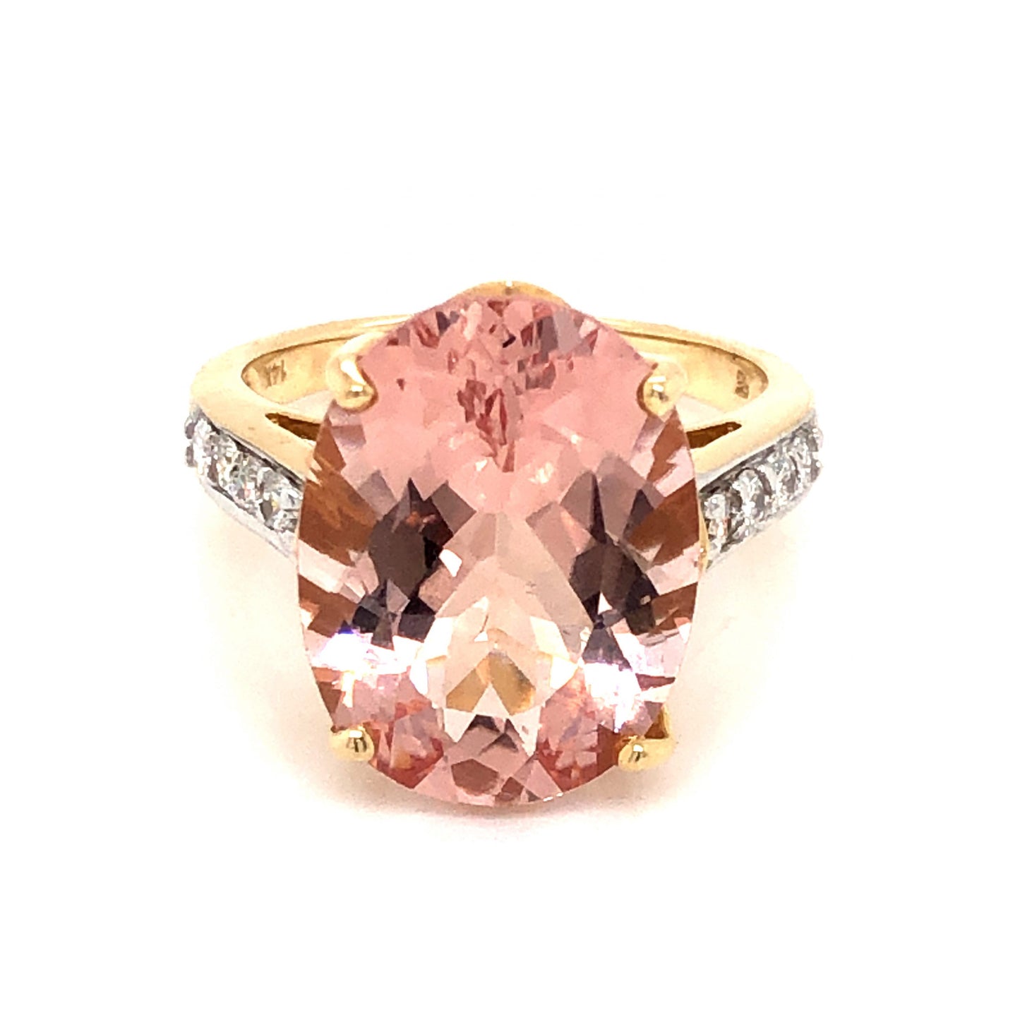 7.50 Oval Pink Morganite and Diamond Ring in 14k Yellow Gold and Platinum