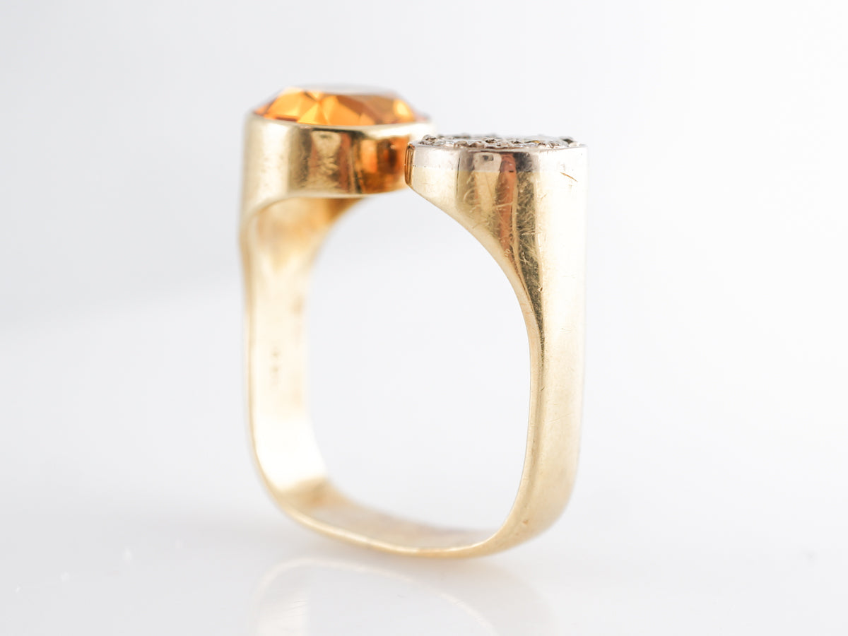 Oval Citrine w/ Pave Diamond Ring in 18k Yellow Gold