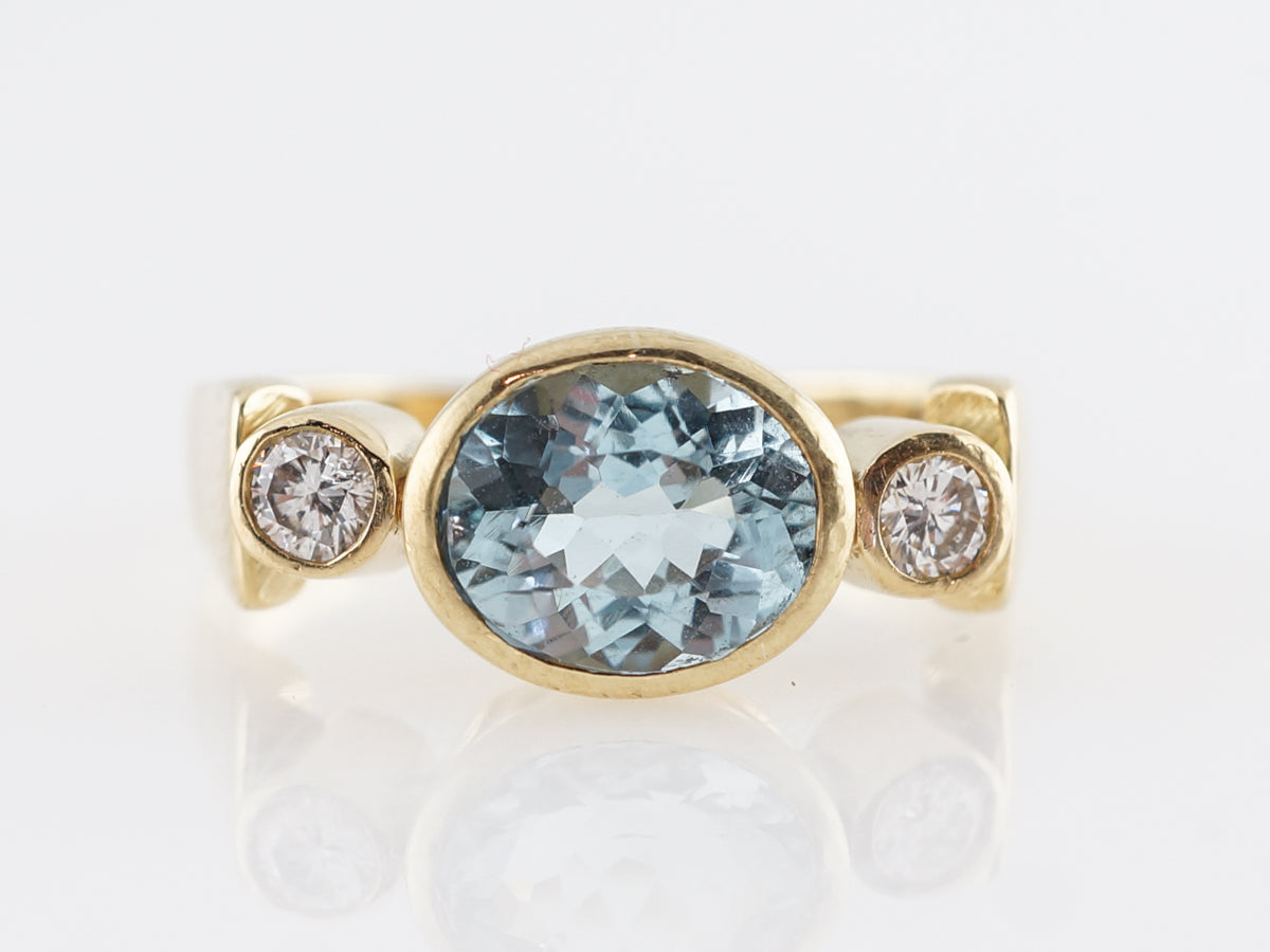Oval Cut Aquamarine & Diamond Ring in 18k Yellow Gold