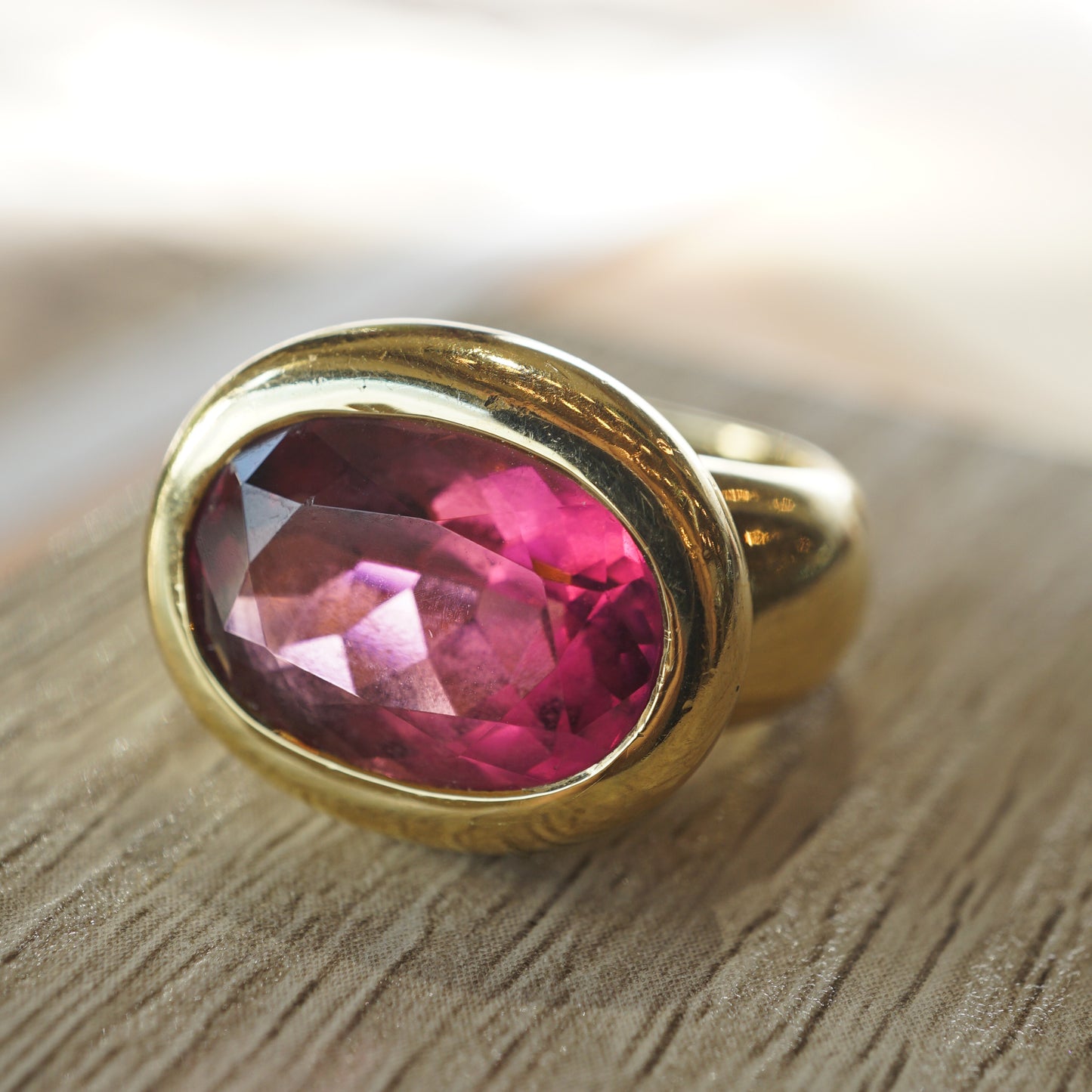 Oval Cut Pink Tourmaline Cocktail Ring in 18k Yellow Gold