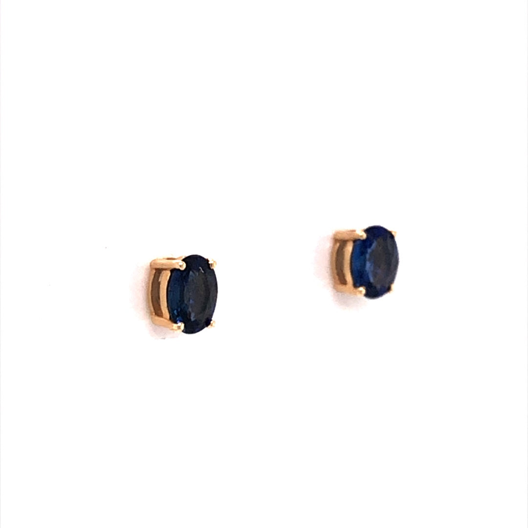 Every timeless jewelry collection needs Sapphire Studs! These elegant, modern stud earrings feature oval cut blue sapphires in 14 karat yellow gold. Two (2) .325 dark blue sapphires are set in prongs. Lightweight and stylish, these modern sapphire studs are sure to brighten up your look! Minimal and colorful. A playful addition to create the perfect capsule jewelry box!
