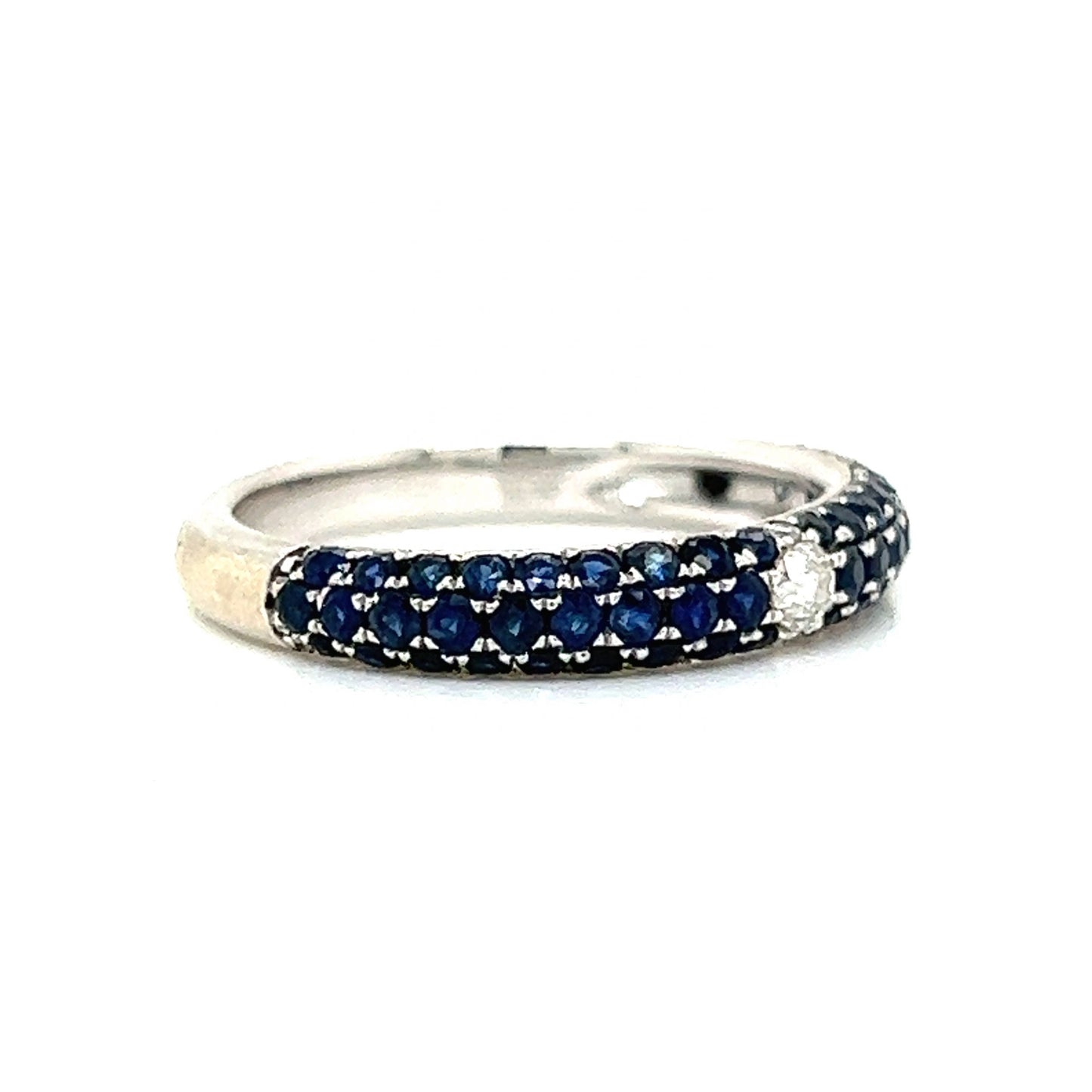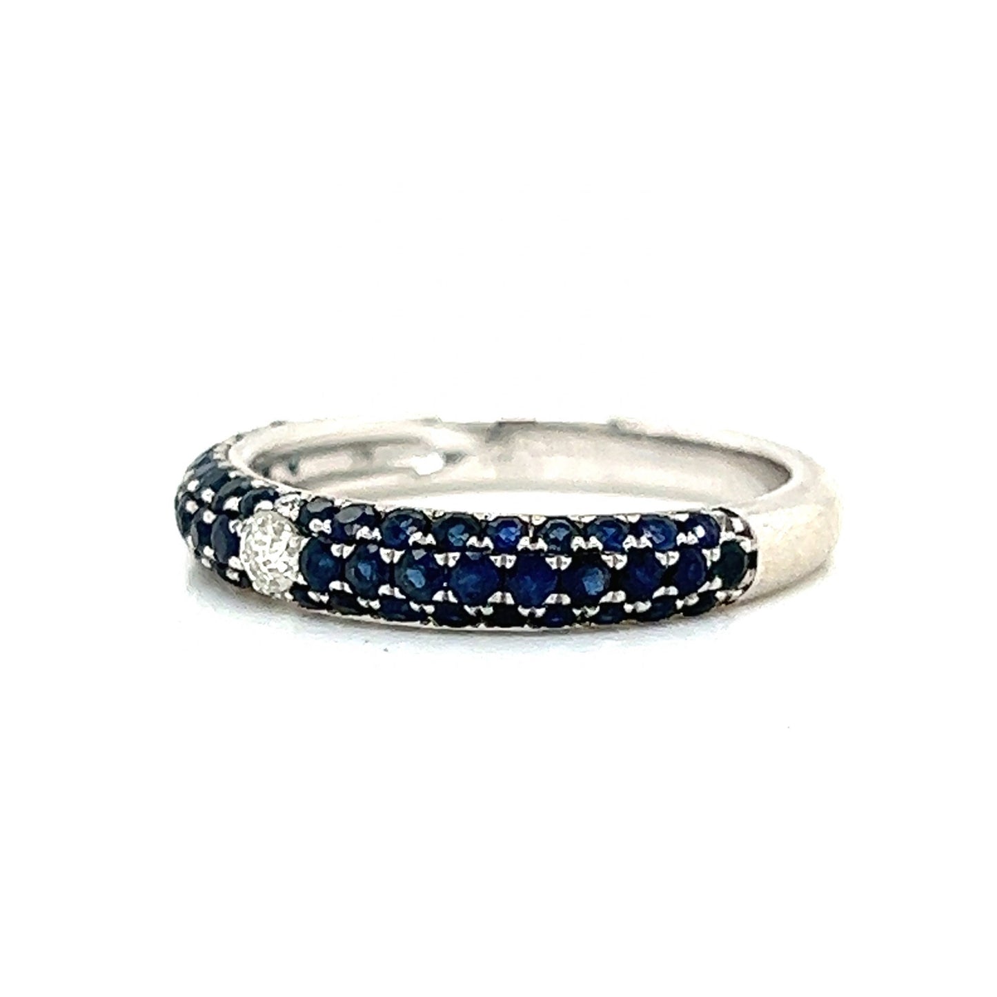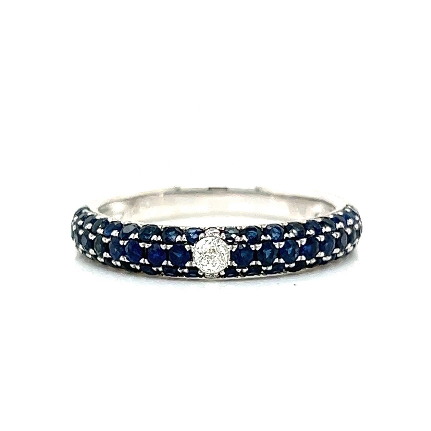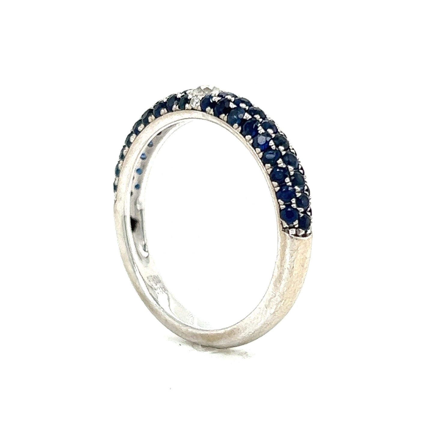 Pave Blue Sapphire & Diamond Band in 14k White Gold