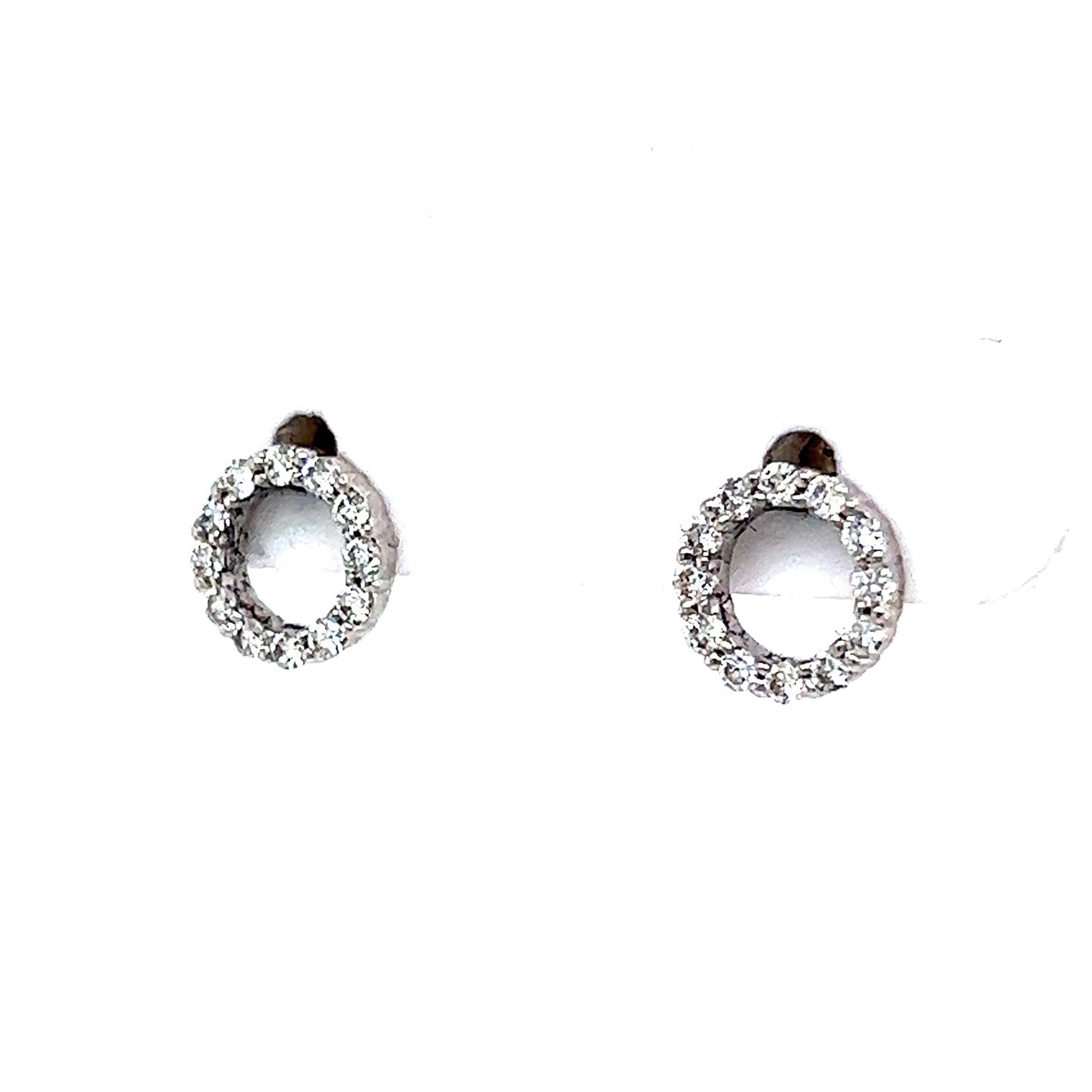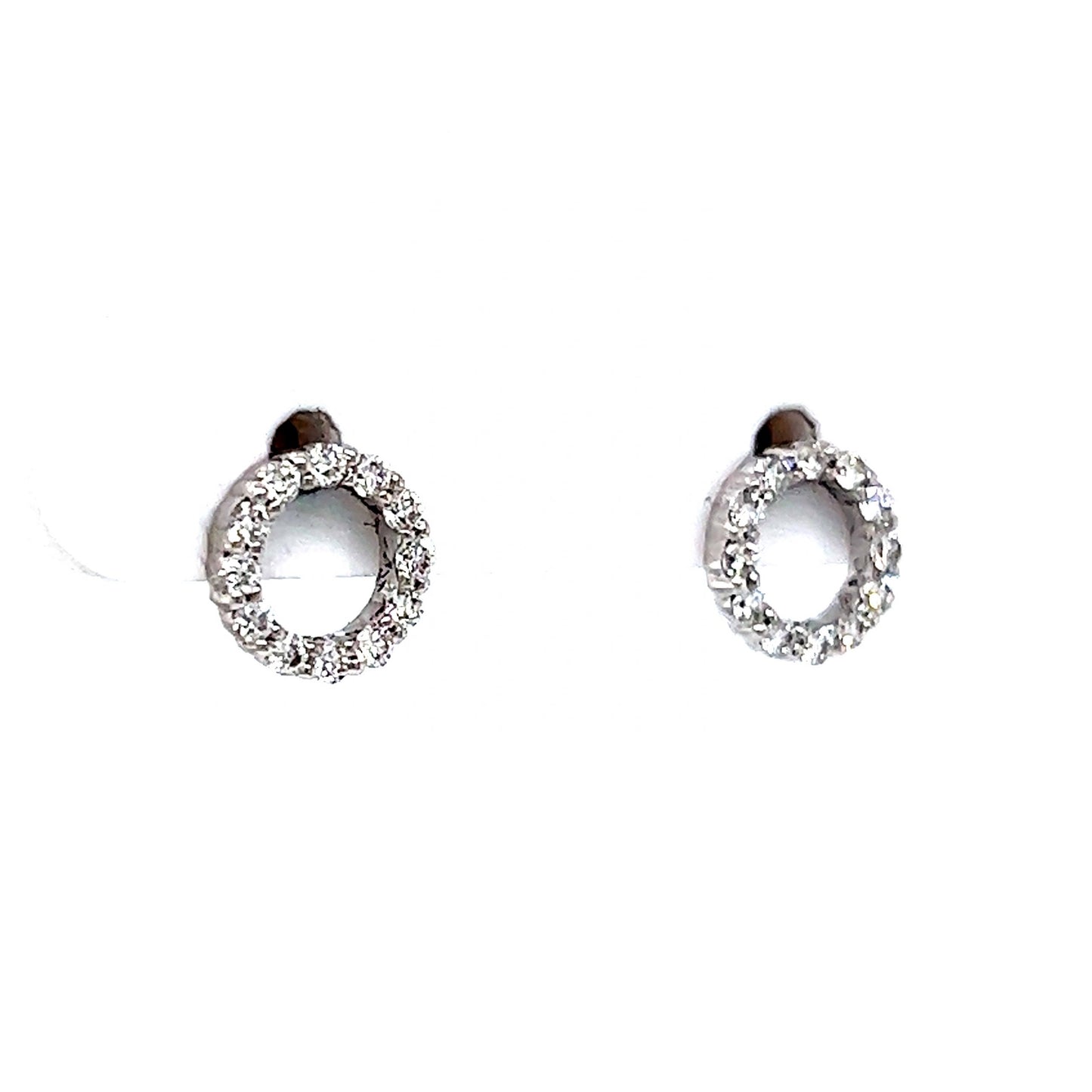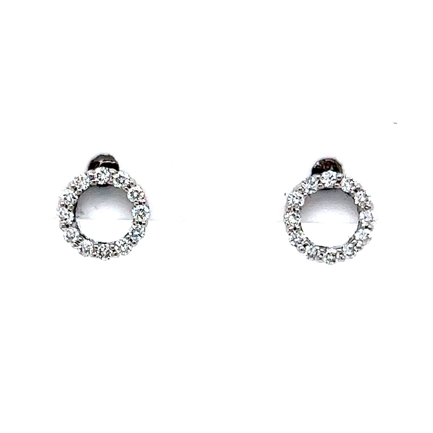 Pave Diamond Circle Stud Earrings in 14k White Gold