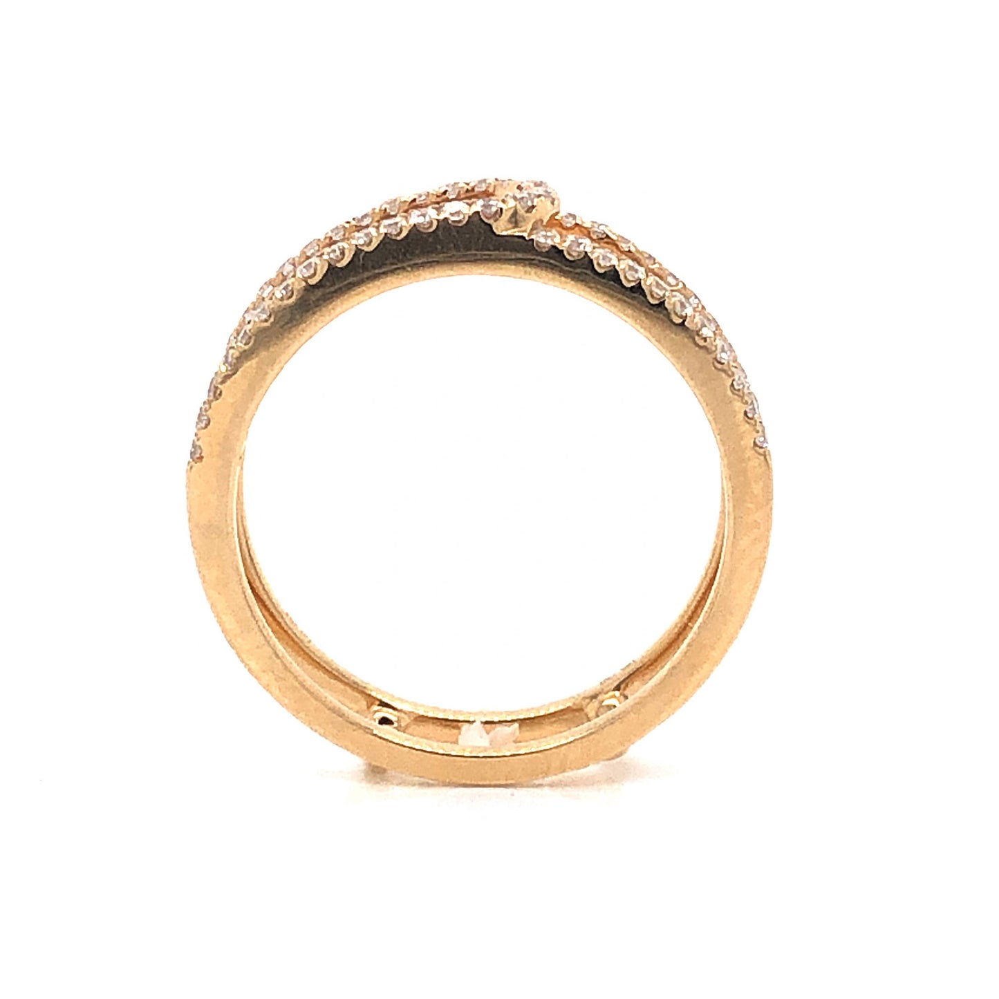 This modern floating stacking band features .29 carats of pave set diamonds in high polish 18 karat yellow gold. Mesmerizing and cut for maximum brilliance, fifty-five (55) near colorless diamonds decorate each millimeter if the ring. Its a right hand ring with dimension and style! For more ring inspiration, Check out our feature article on Brides, “18 Types of Rings Everyone Should Know”!